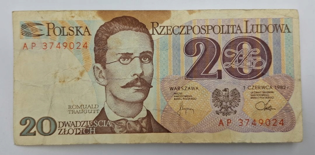 Стара колекційна банкнота Польща 20 злотих 1982 р