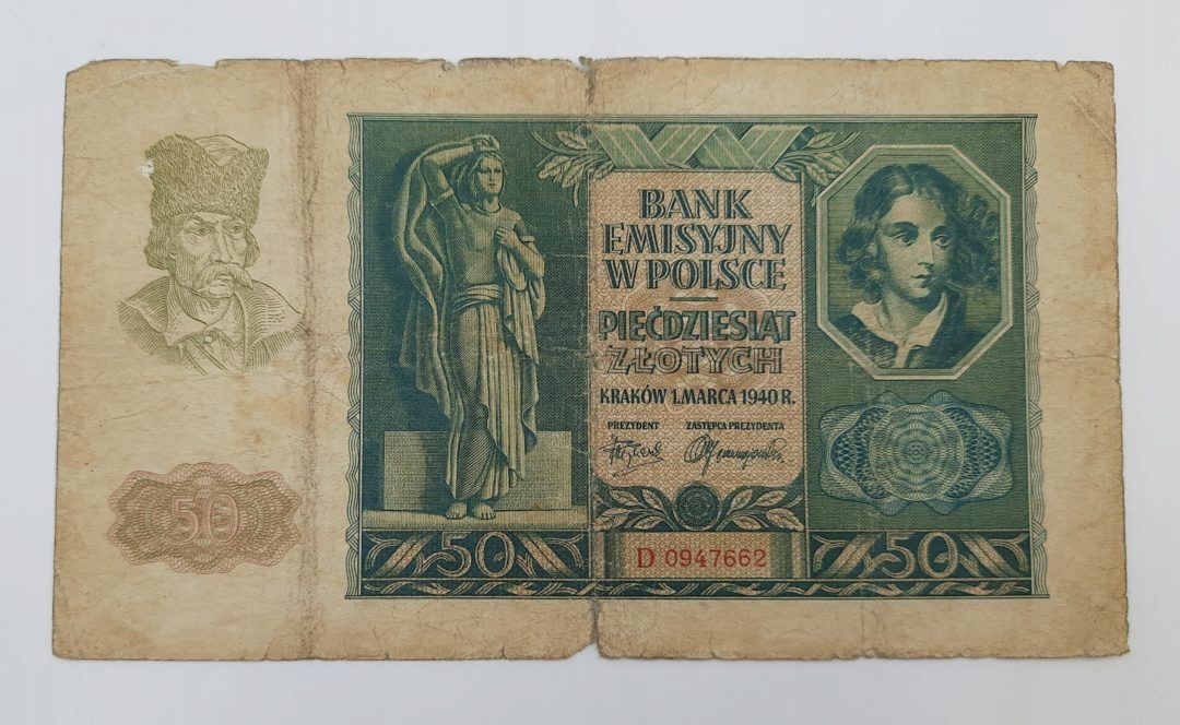 Стара колекційна банкнота Польща 50 злотих 1940 р