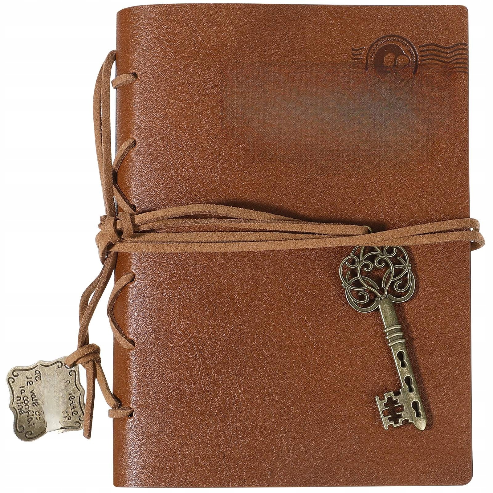 ✅1 * Пустий блокнот із поліуретановою обкладинкою у класичному ретро-вінтажному стилі, шнурок, переплетений ключем, Пустий блокнот, журнал подорожей, щоденник, альбом для малюнків (кава)