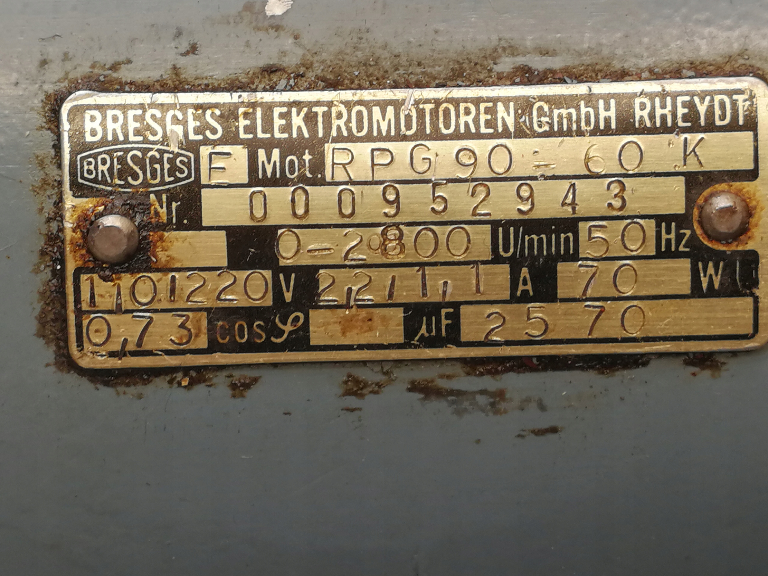 Старий електричний двигун Bresges RPG90-6 70W 2800/хв із швейним гальмом?
