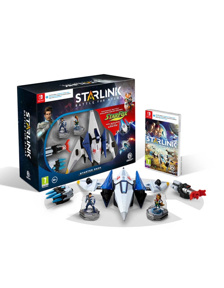 Стартовий пакет Starlink: Battle for Atlasпотрібний для гри з пакетами Starship, Pilot і Weapon Pack. Усі модульні іграшки Starlink працюють лише з відеоігрою Starlink: Battle for Atlas і підставкою для контролера Nintendo Switch.