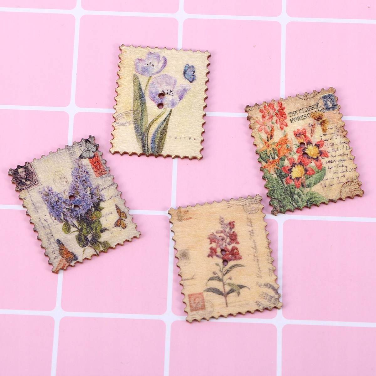 Старовинні дерев'яні ґудзики з 2 отворами, поштові марки 20