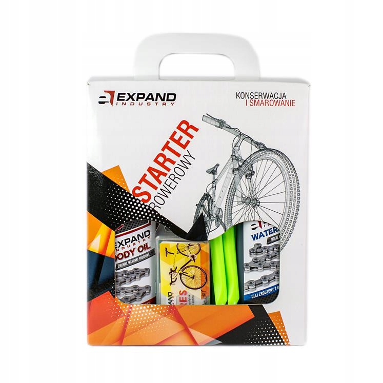Стартер включає засіб для очищення велосипеда від бруду 200 мл зі зручним розпилювачем, exol 100 мл для змащування та обслуговування, масла для ланцюга: для мокрого та сухого. умови, монтажне мастило, ремкомплект для камер і важелі для зняття шин