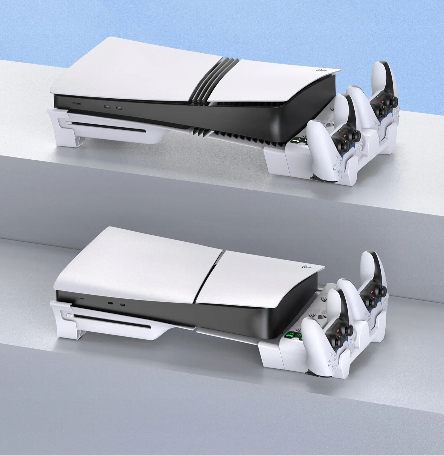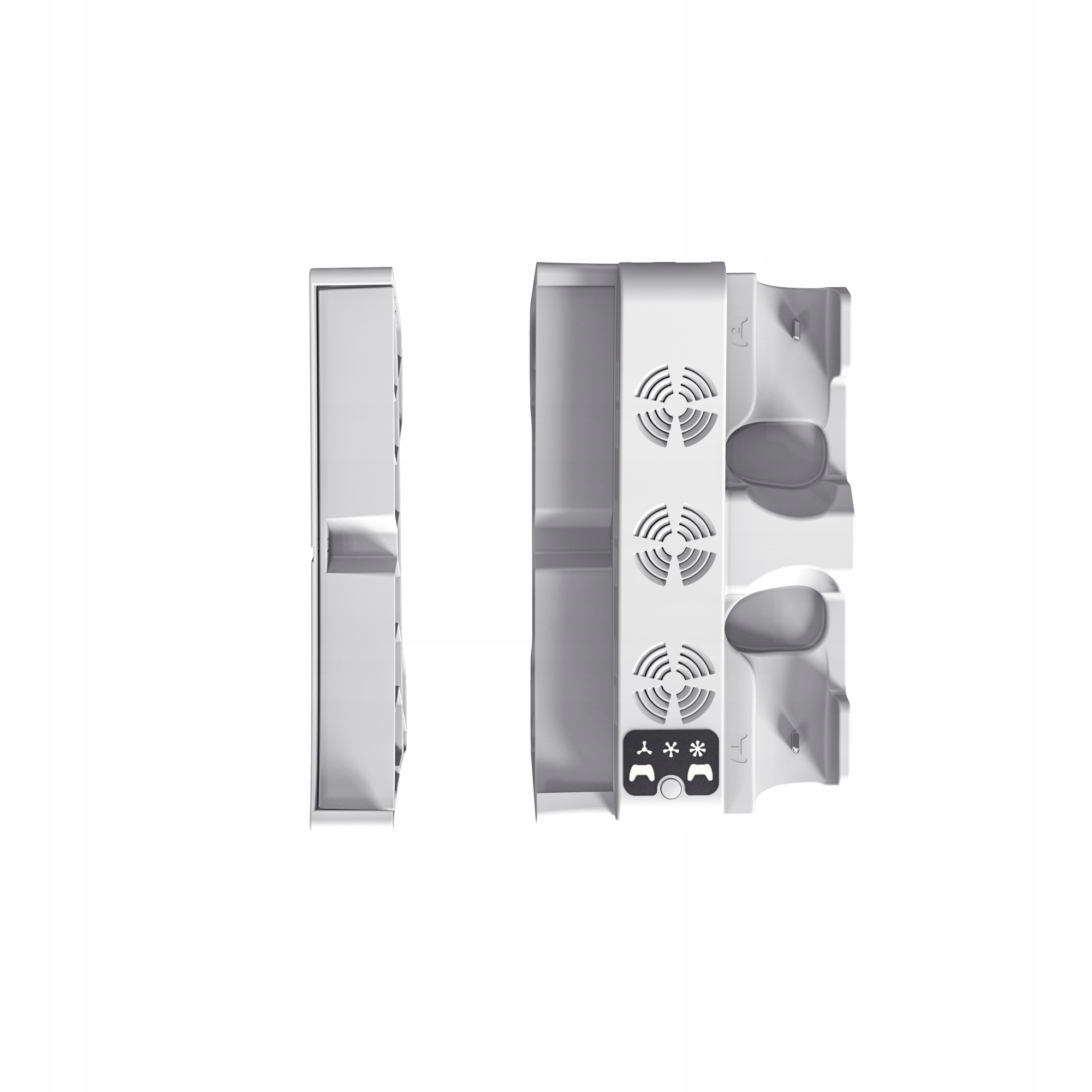 Ви шукаєте практичне доповнення до консолі PS5 Slim або Pro? Ця багатофункціональна підставка забезпечує ефективне охолодження, зручну зарядку двох планшетів DualSense і порядок в ігровій зоні. Ідеальне рішення для кожного гравця Playstation!