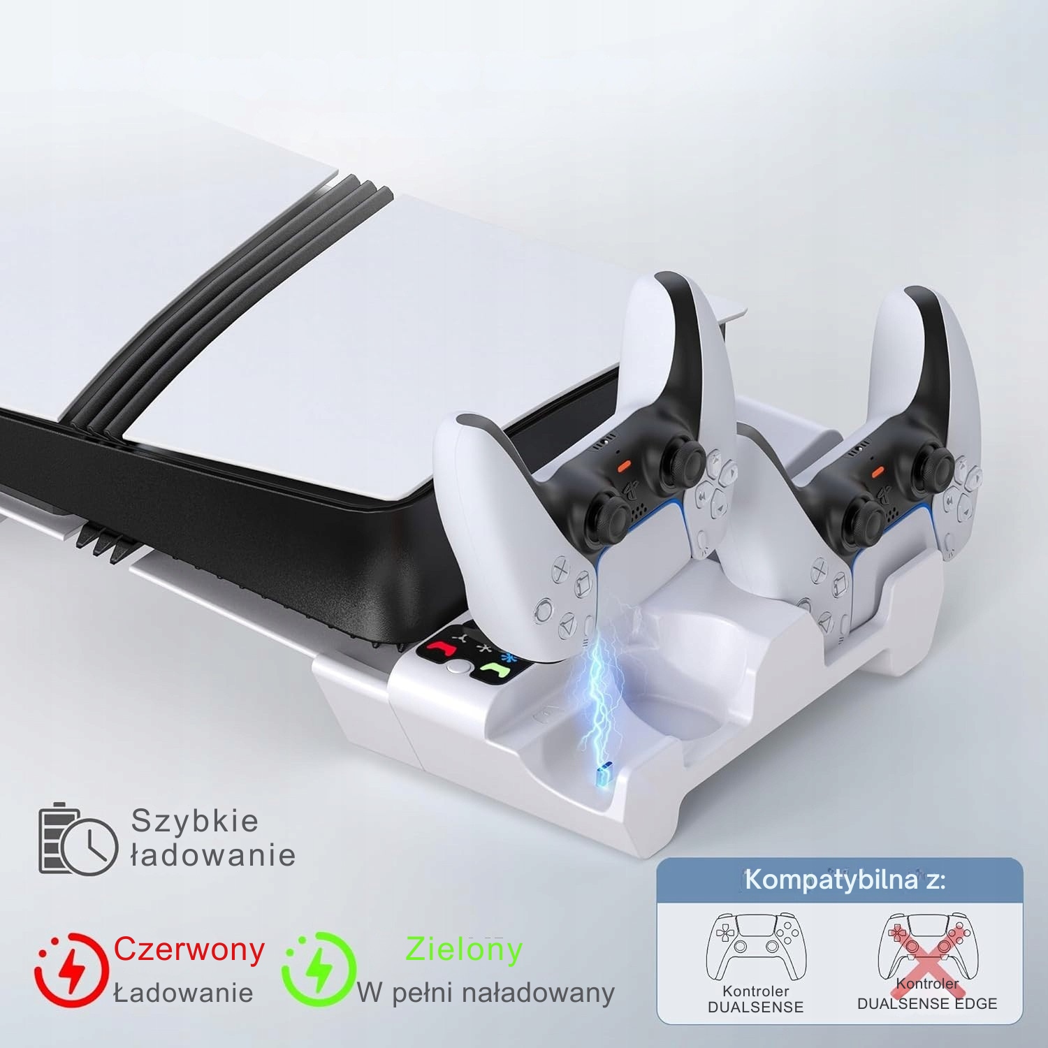 Ця сучасна підставка є ідеальним рішенням для власників консолей PlayStation 5 - як Slim, так і Pro версій. Завдяки цьому ви забезпечите ефективне охолодження свого обладнання, безпечну зарядку планшетів і естетичний вигляд вашої ігрової станції.