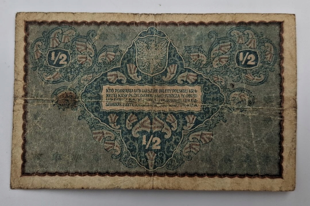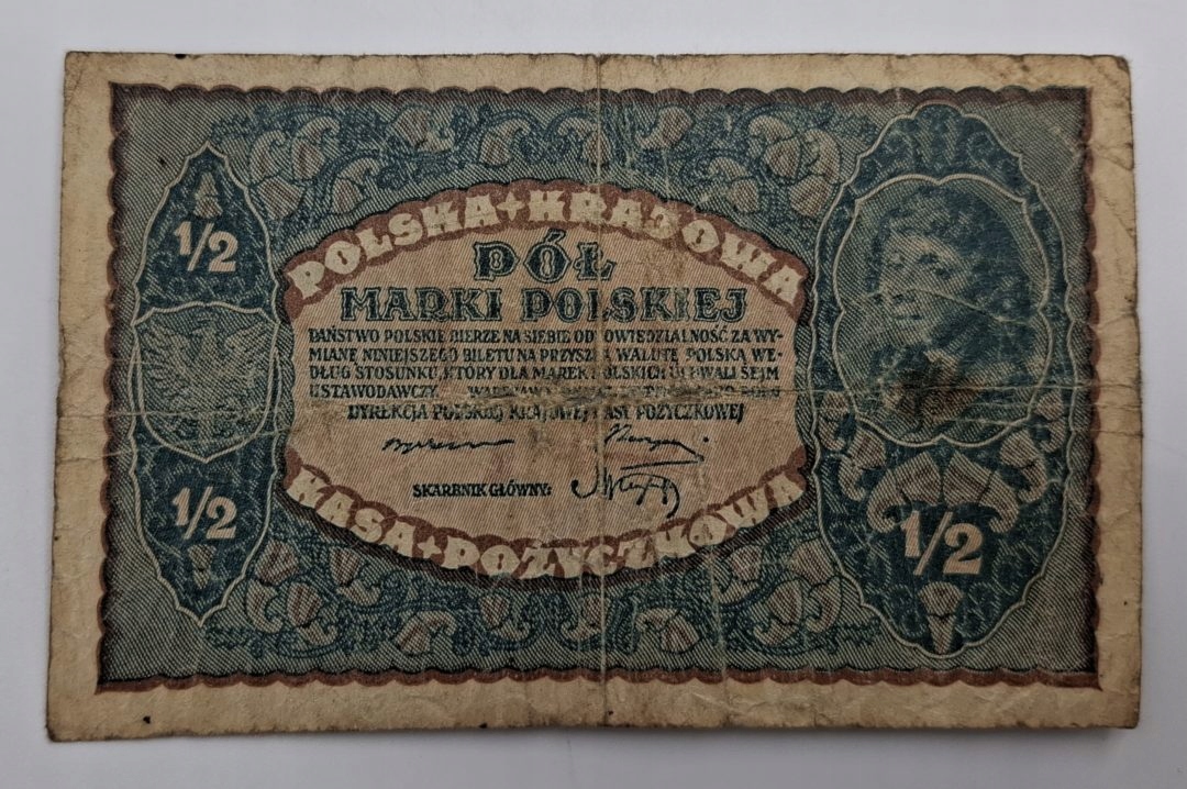 Stary Banknot kolekcjonerski pół 1/2 marki polskiej Polska 1920