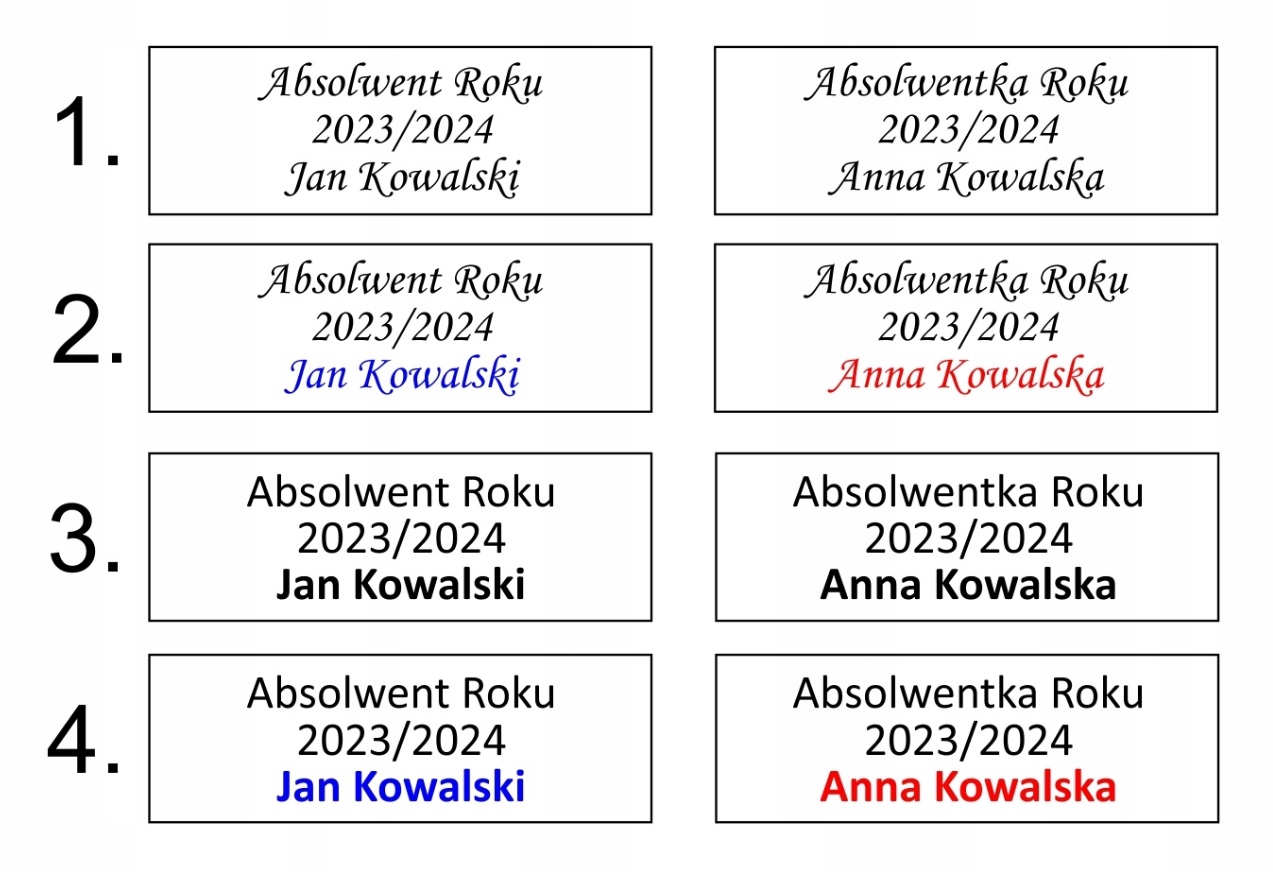 - якщо ім'я та прізвище мають бути вказані на табличці, уважно перевірте їх правильність; при змінівисилайте змінені імена та прізвища! ми не несемо відповідальності за неправильно надіслані або змінені назви