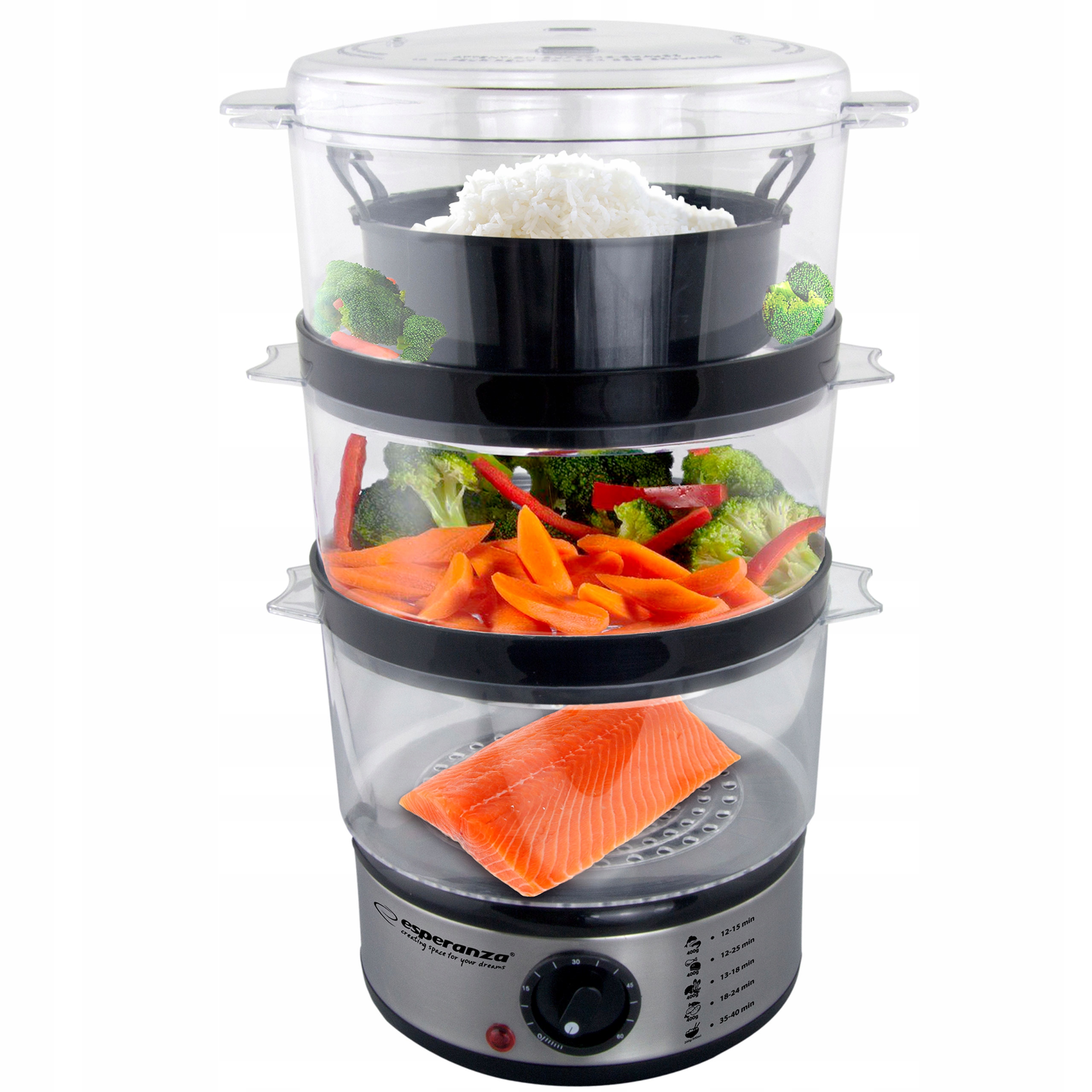 Три великі ємності дозволяють готувати кілька різних страв одночасно. Вбудований таймер зворотного відліку полегшує процес приготування. Завдяки простій конструкції пароваркою дуже легко керувати та чистити її. Страви, приготовані на пару, рекомендовані дієтологами. Особливо вони важливі для людей з проблемами травної системи та всіх, хто стежить за своєю фігурою.