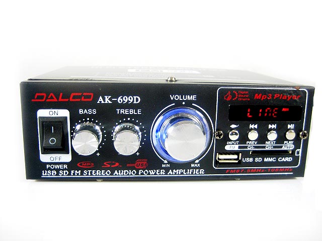 Підсилювач має USB-порт і слот для SD-карти, завдяки яким ми можемо відтворювати музику у форматі mp3.