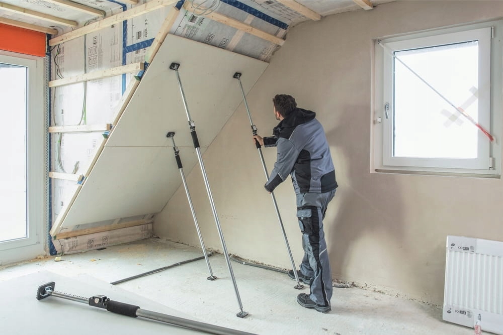 Інструмент для розміщення та підтримки гіпсокартону, дощок, панелей, рейок, металевих смуг, фольги та корпусів ламп.