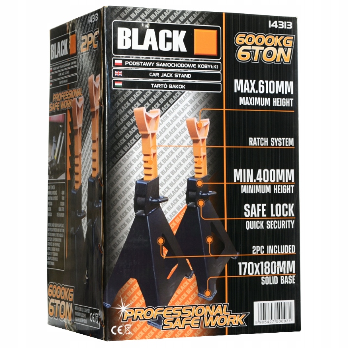 Дуже міцні Чорні КОЛЕСА 6T дуже легко регулюються по висоті. Вони виготовлені з матеріалів найвищої якості, тому можуть використовуватися протягом тривалого часу. Вони ідеально підходять як для автомобільних майстерень, так і для домашніх гаражів.