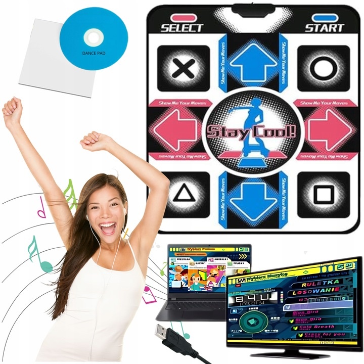 STEPMANIA ТАНЦЮВАЛЬНИЙ КИЛИМОК USB З CD ДИСКОМ - 90СМ Х 80СМ