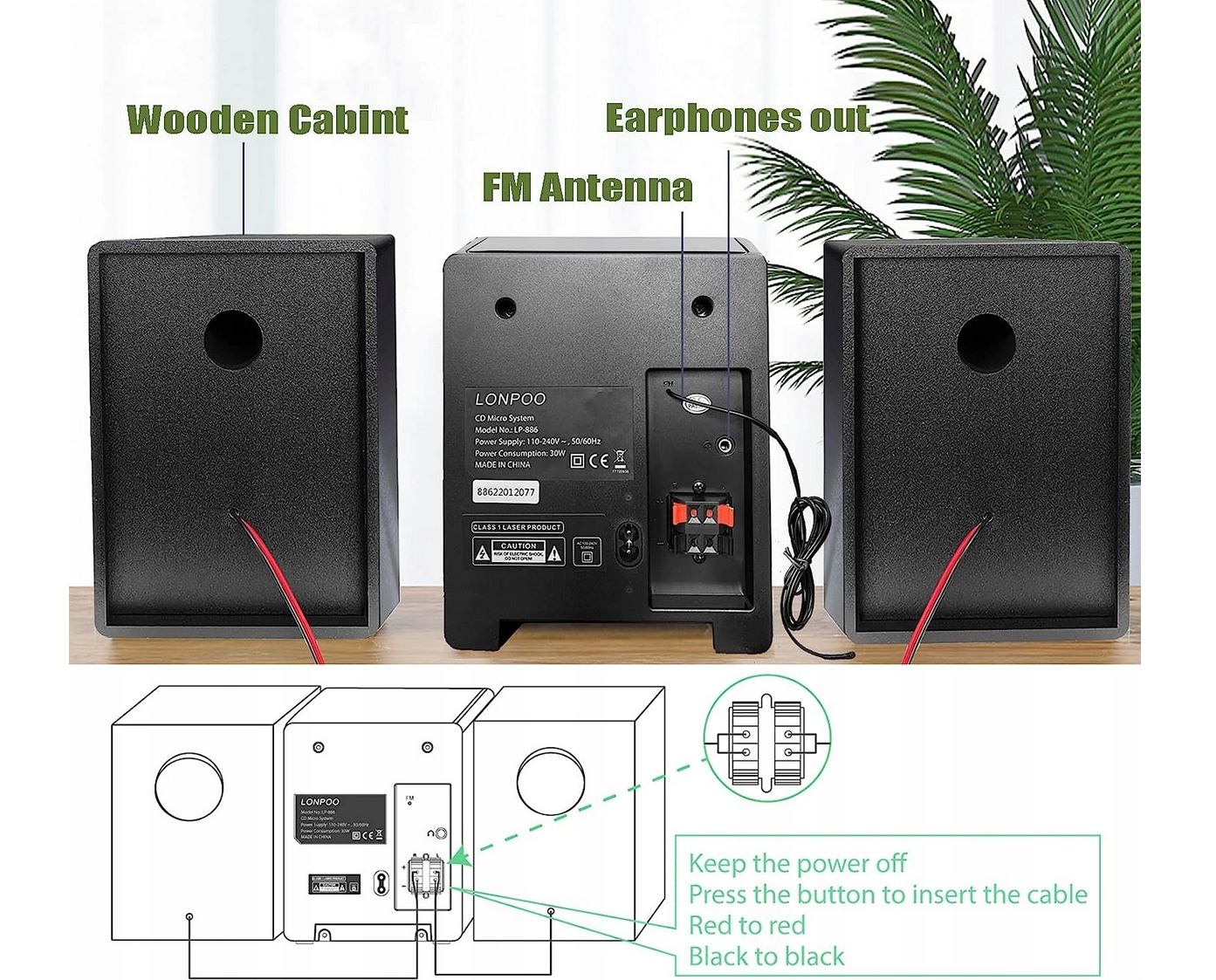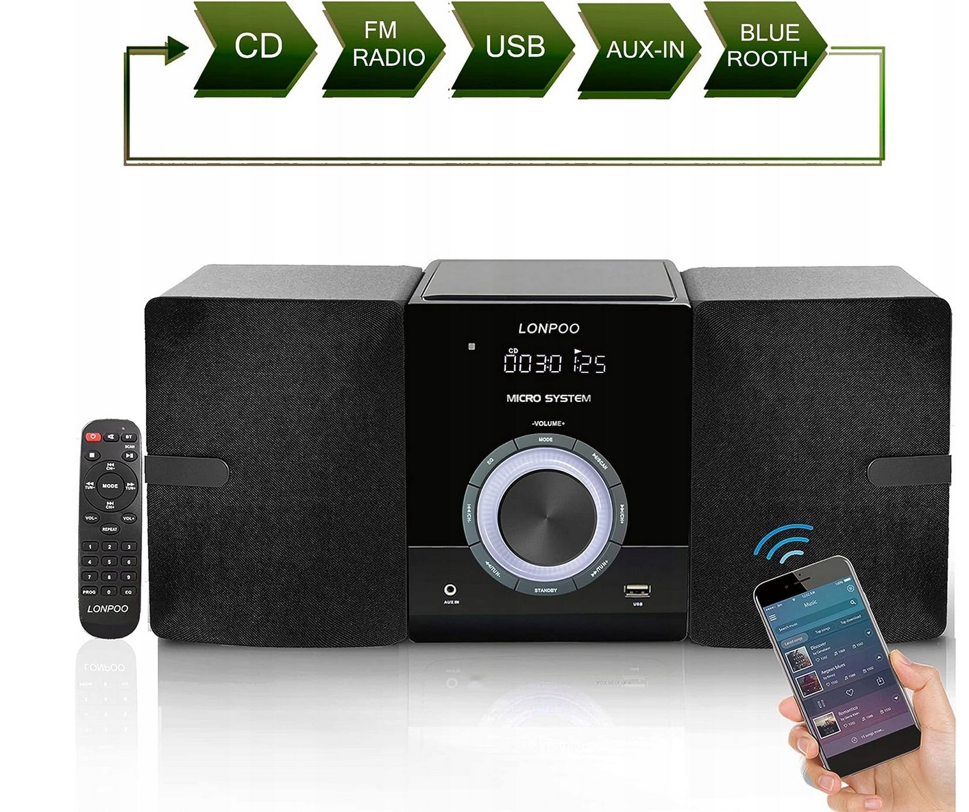 Класичний дизайн і сучасні технології традиційний форм-фактор мікросистеми оновлений контрастними чорними поверхнями та РК-дисплеєм з білим підсвічуванням. Великий світлодіодний екран, пульт дистанційного керування, дерев’яний корпус динаміка.