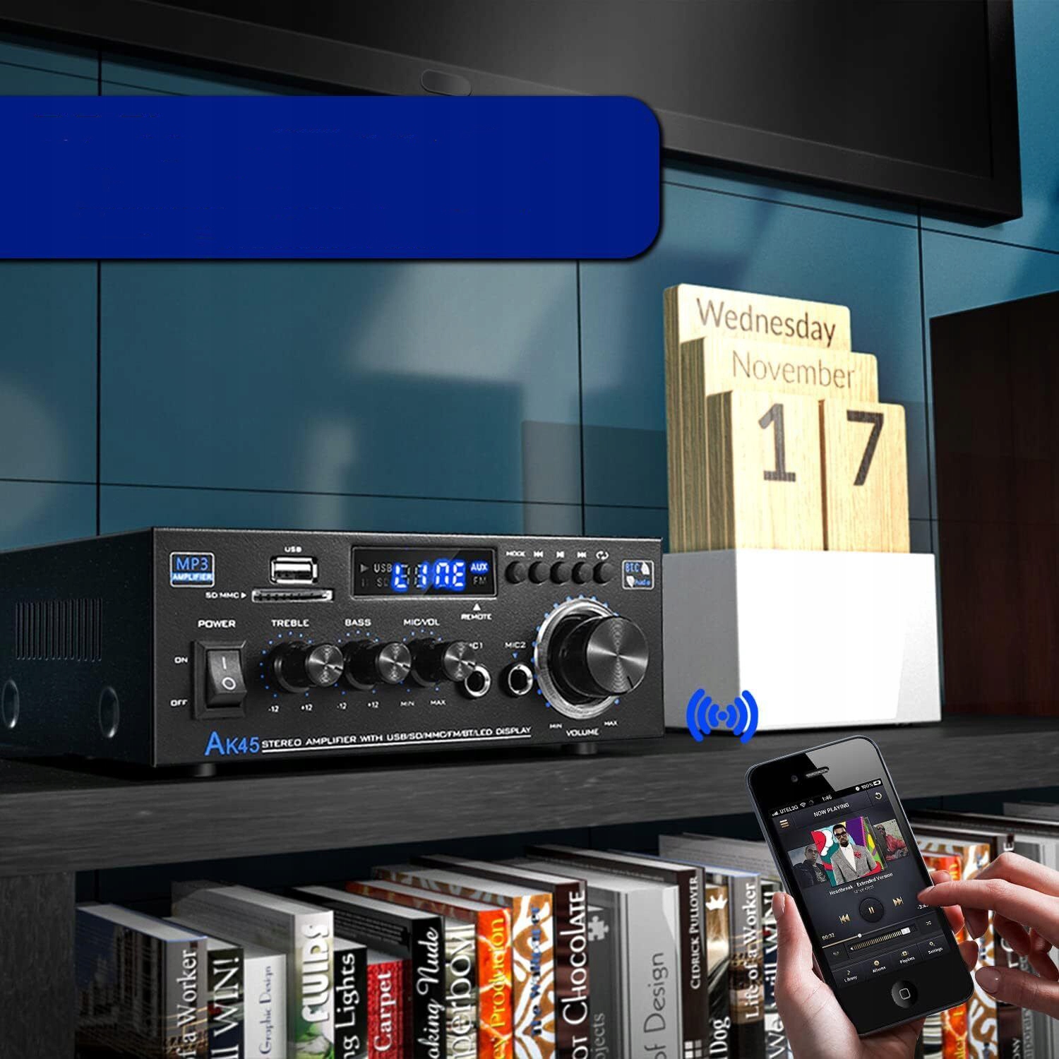 ✅ Стереопідсилювач AK45: повністю оновлений дизайн, номінальна потужність 40 Вт + 40 Вт, пікова потужність 300 Вт + 300 Вт. З функцією мікрофона, висока якість звуку. Вбудований блок живлення, підтримує вхідний струм змінного струму 90-240 В і вхідний струм постійного струму 12 В/5 A, Plug and Play.