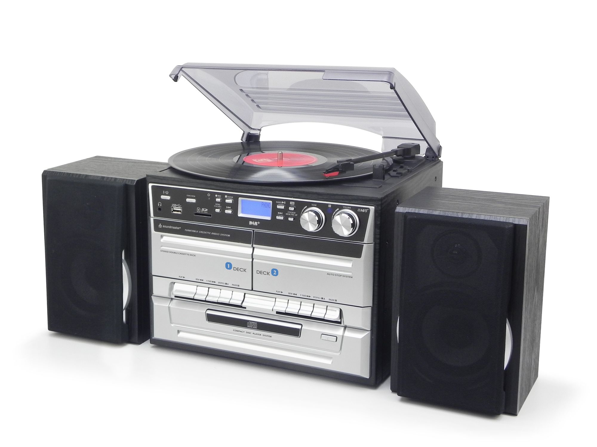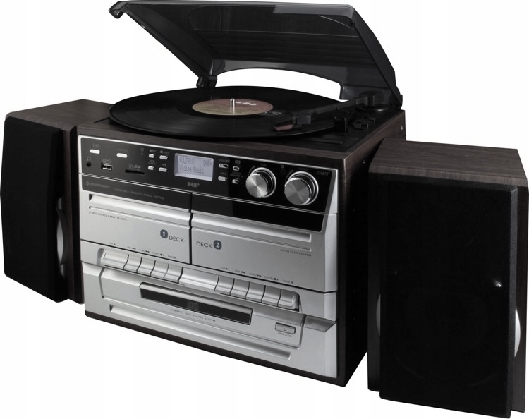 Завдяки двом динамікам вам не потрібен додатковий підсилювач для прослуховування колекції дошки. Крім того, ця вежа також має магнітофон для касет та CD -програвач .