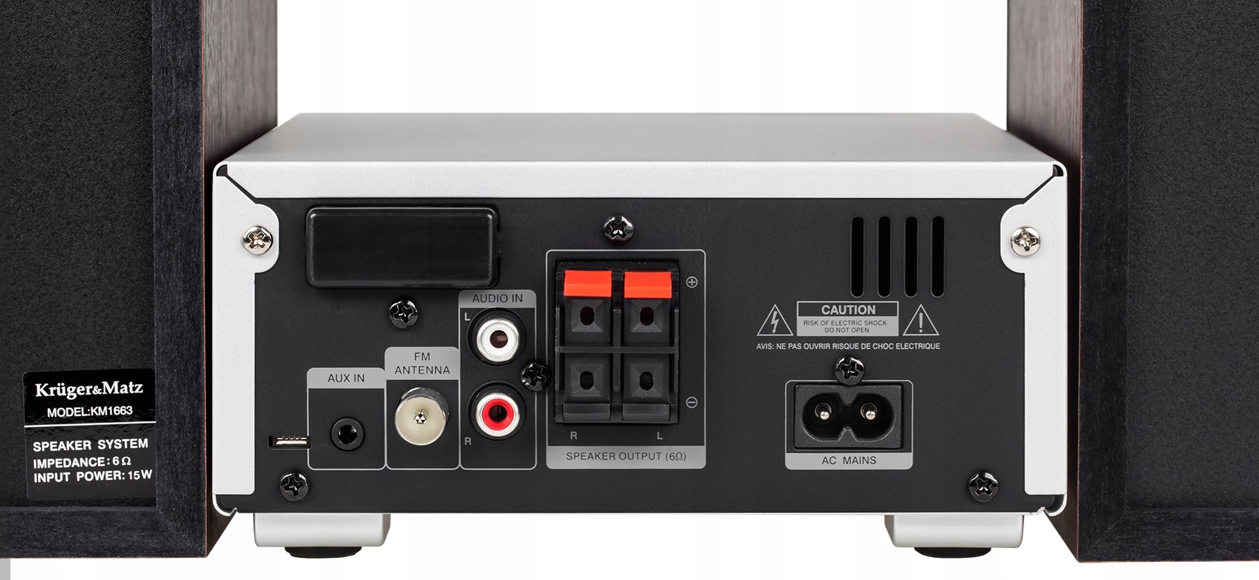Міні-вежа Kruger&Matz KM1663.1, незважаючи на свої компактні розміри, пропонує користувачам низку можливостей. Два входи AUX дозволяють відтворювати музику, наприклад, з MP3-плеєра, з’єднання Bluetooth забезпечує зручну бездротову роботу, а порт USB дозволяє заряджати зовнішні пристрої.