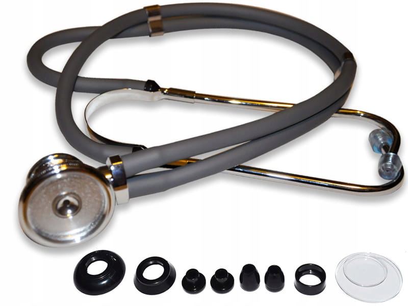 - Стетоскоп Rappaport HS-30C з аксесуарами: - кабелі: прозоро-блакитний, ліра та срібляста головка, - конструкція з двома головками з можливістю повороту голови на 180º, - аксесуари для аускультації новонароджених, дітей і дорослих, - двоканальний кабель, - м'які, самогерметизуючі оливки, - міцний, зручний дизайн, - додаткові аксесуари (5 стетоскопів у комплекті) один).