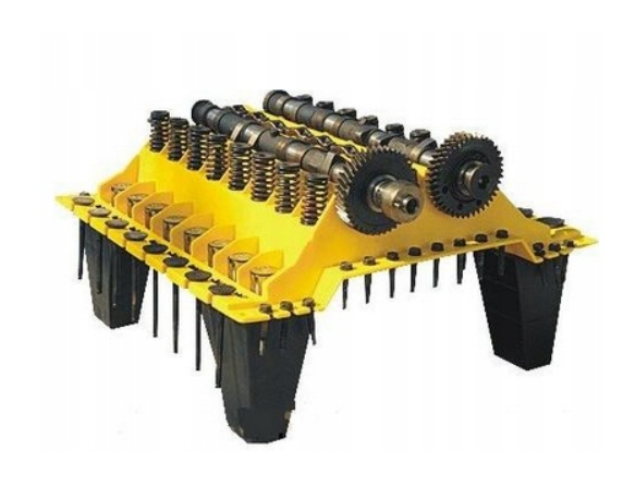 Спеціальний, універсальний дизайн, адаптований до кожної головки, тримач з полицею для 2 розподільних валів, окремі поверхні для клапанів, пружини клапанів, гідравлічні підйомники клапанів, гвинти головка та ін. безпечний, міцний матеріал, піддони для рідини забезпечують чисту роботу