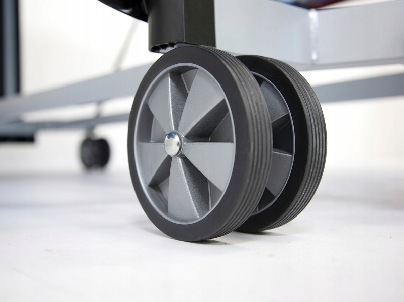 Чотири подвійних колеса з гумовою протектором діаметром 125 мм, два з яких обертаються на 360°, дозволяють легко переміщати стіл за гра.
