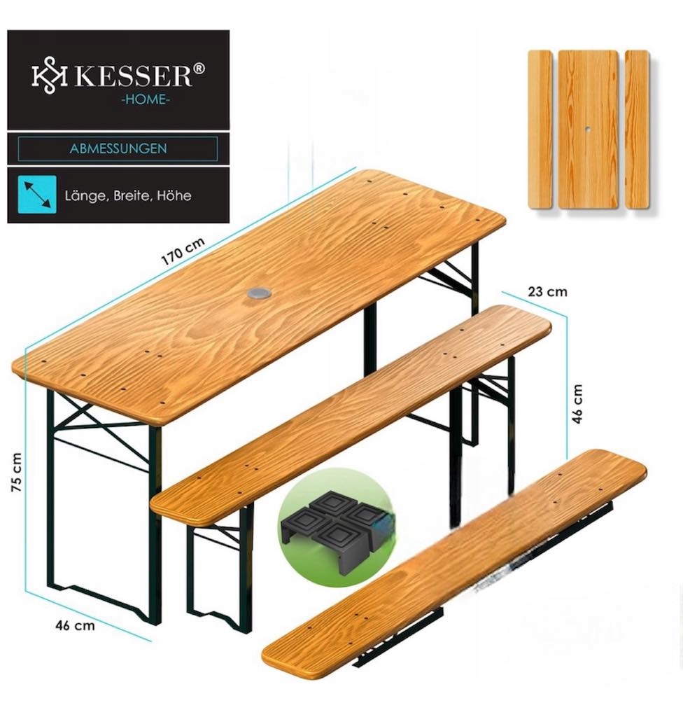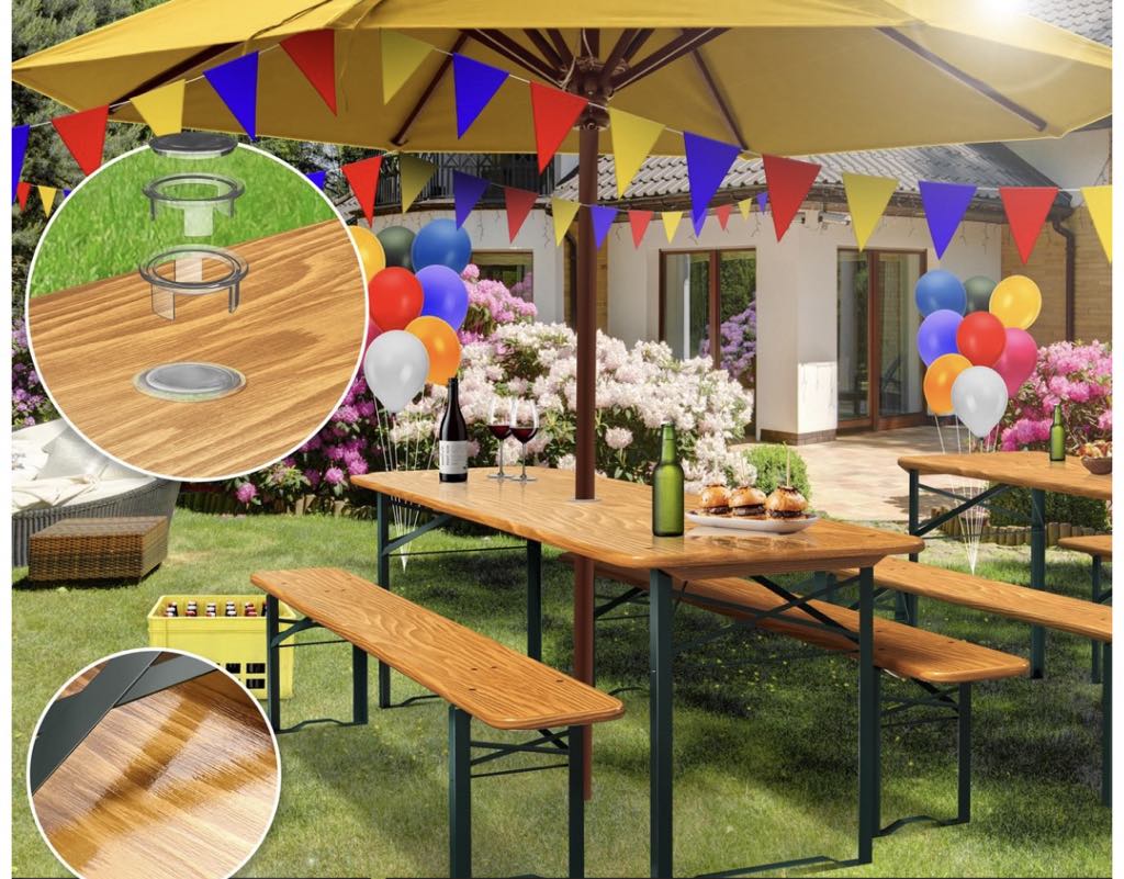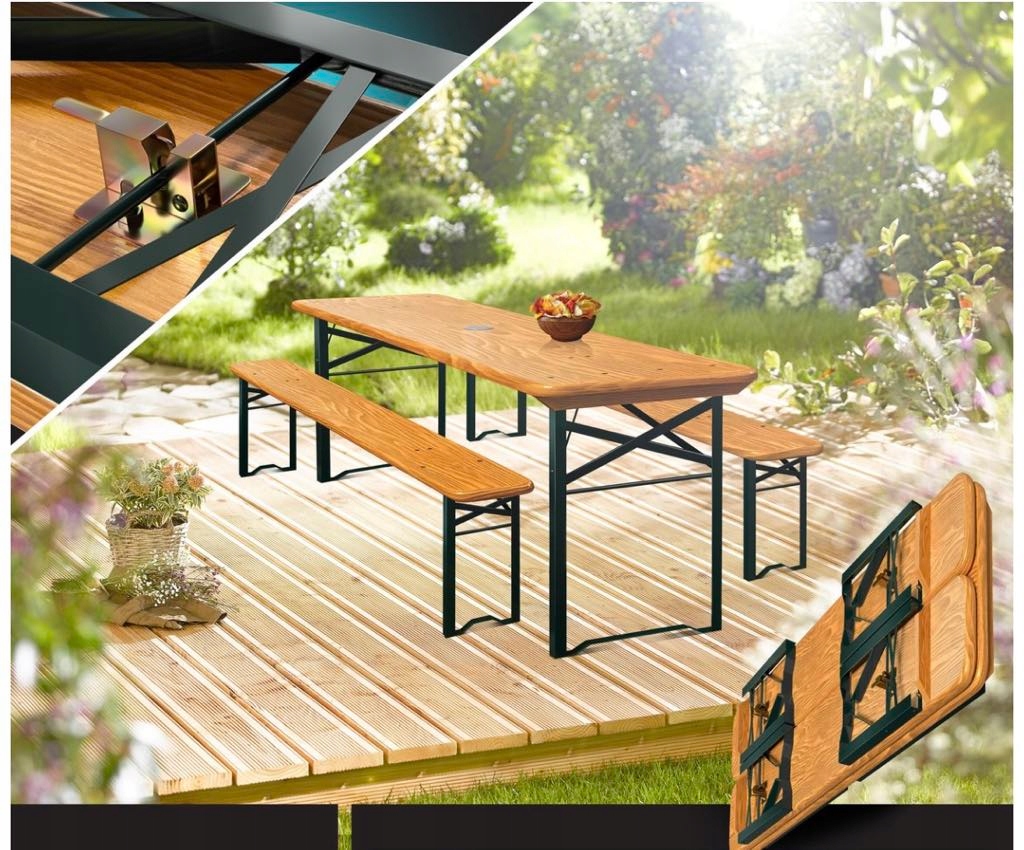 Вечірка! Комплект включає великий стіл та дві лавки, що робить його чудовим вибором для сімейних зустрічей, днів народження, грилів або інших подій. Волога конструкція: сталеві кадри та стійкі петлі гарантують міцність та міцність. Елегантність