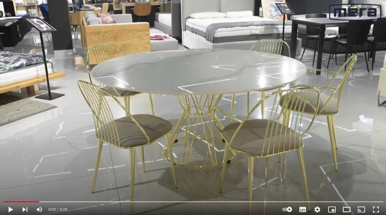 Стіл TAVOLO CIRCUS - це поєднання функціональності та естетики. Його кругла стільниця виготовлена з агломерату з красивим природним мармуровим малюнком. Це дуже міцний і стійкий до механічних пошкоджень матеріал і при цьому радує своїм зовнішнім виглядом. Стільниця має діаметр 160 см, що дозволяє комфортно обідати навіть у великих групах.