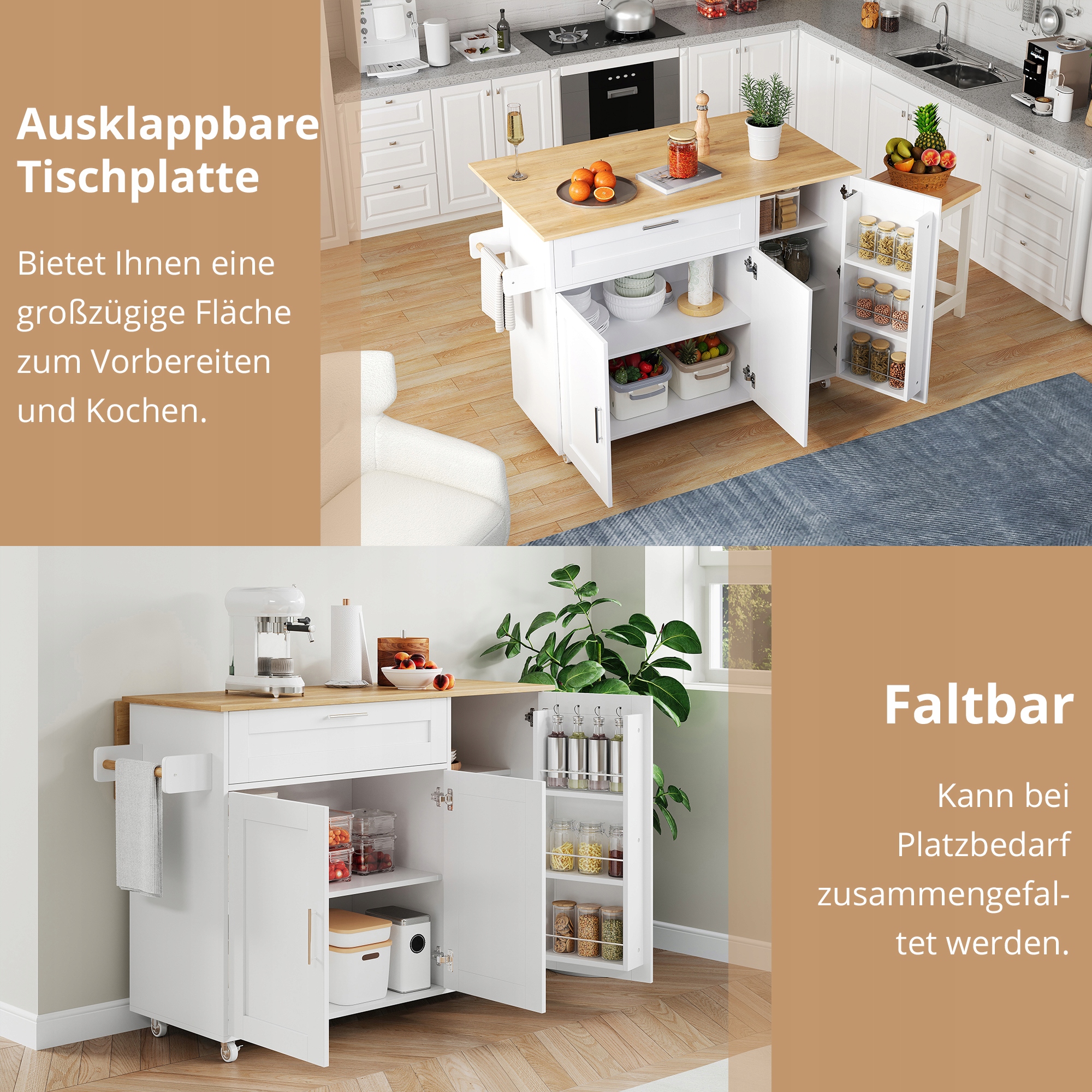 Стіл мобільний кухонний 132,5х44(70)х90 см розкладний з тумбою та колесами