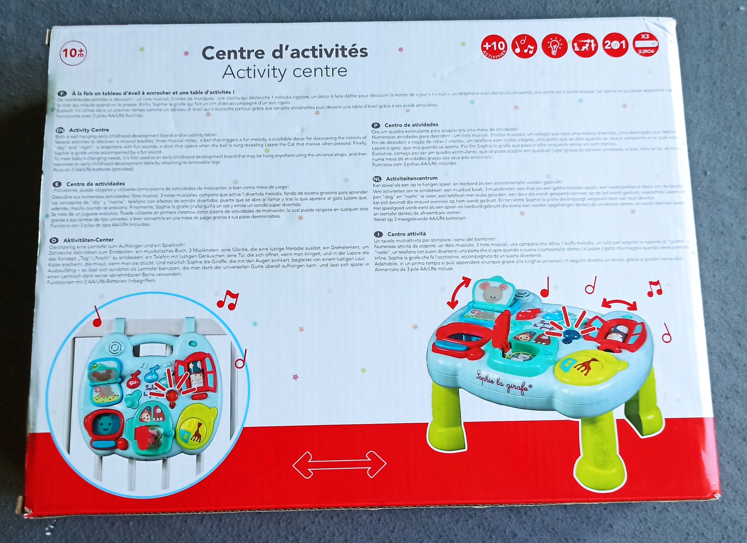 Завдяки додатковим функціям, таким як ігрова зона з мобільними елементами, навчальний стіл стає центром радісної діяльності у вашому домі. Безпека є пріоритетом, тому всі матеріали, які використовуються у виробництві, нетоксичні та відповідають європейським стандартам безпеки іграшок. У набір також входить набір батарейок, тож розваги можуть початися одразу після того, як ви дістанете його з коробки. Sofia Giraffe - багатофункціональний стіл для занять - ідеальний подарунок як для хлопчиків, так і для дівчаток, який гарантує тривалий час розваг і відкриттів. Дайте своїй дитині шанс розвиватися через гру, вибравши цей унікальний продукт.