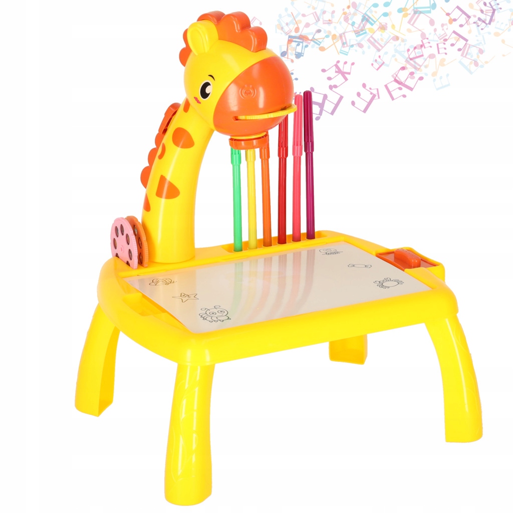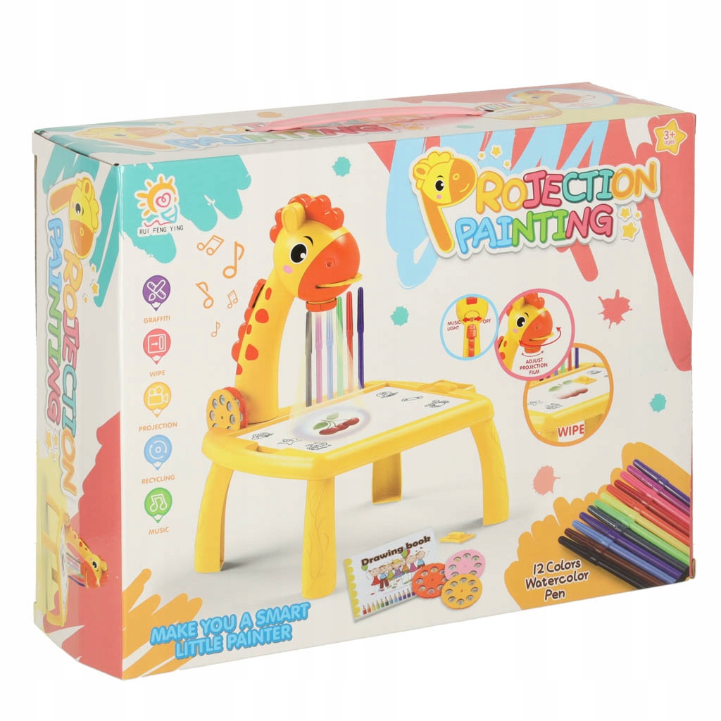 НАБІР ДЛЯ ТВОРЧОГО МАЛЮВАННЯ -Проектор у формі жирафа є ідеальною іграшкою для дітей, які люблять малювати та малювати. Завдяки різноманітним аксесуарам, таким як кольорові фломастери чи блокнот, що стирається, набір пропонує багато можливостей для творчих ігор. Вибираючи картинки з дисків, дитина може відтворювати вибрані візерунки або створювати власні композиції.