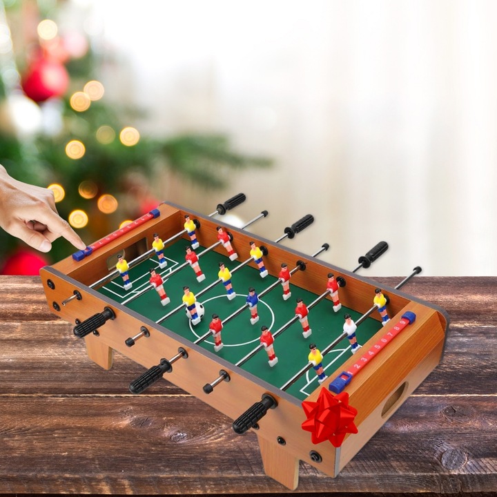 Футболістки міні -ігровий стіл. Його суцільний дизайн гарантує, що навіть найбільш захоплюючі матчі не перевернуть його. Це забезпечує не тільки безпечну забаву, але й довгу радість гри.