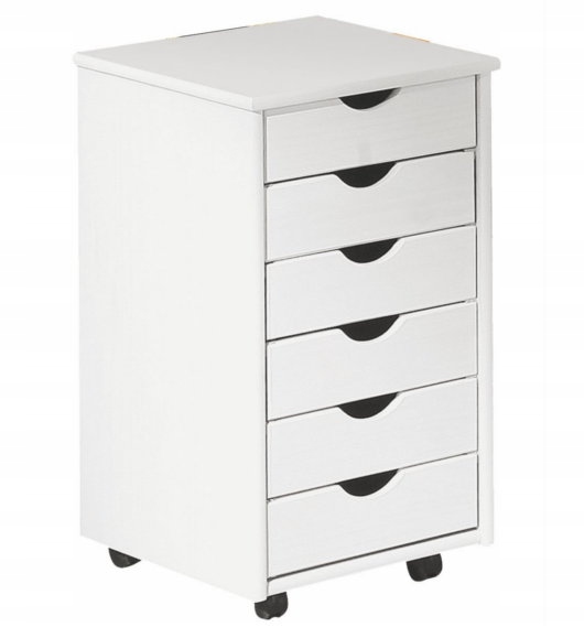 Виготовлений з ламінованого меблевого щита (АБС кромки). Він має чотири колеса, які полегшують його переміщення. Шість ящиків на металевих напрямних.