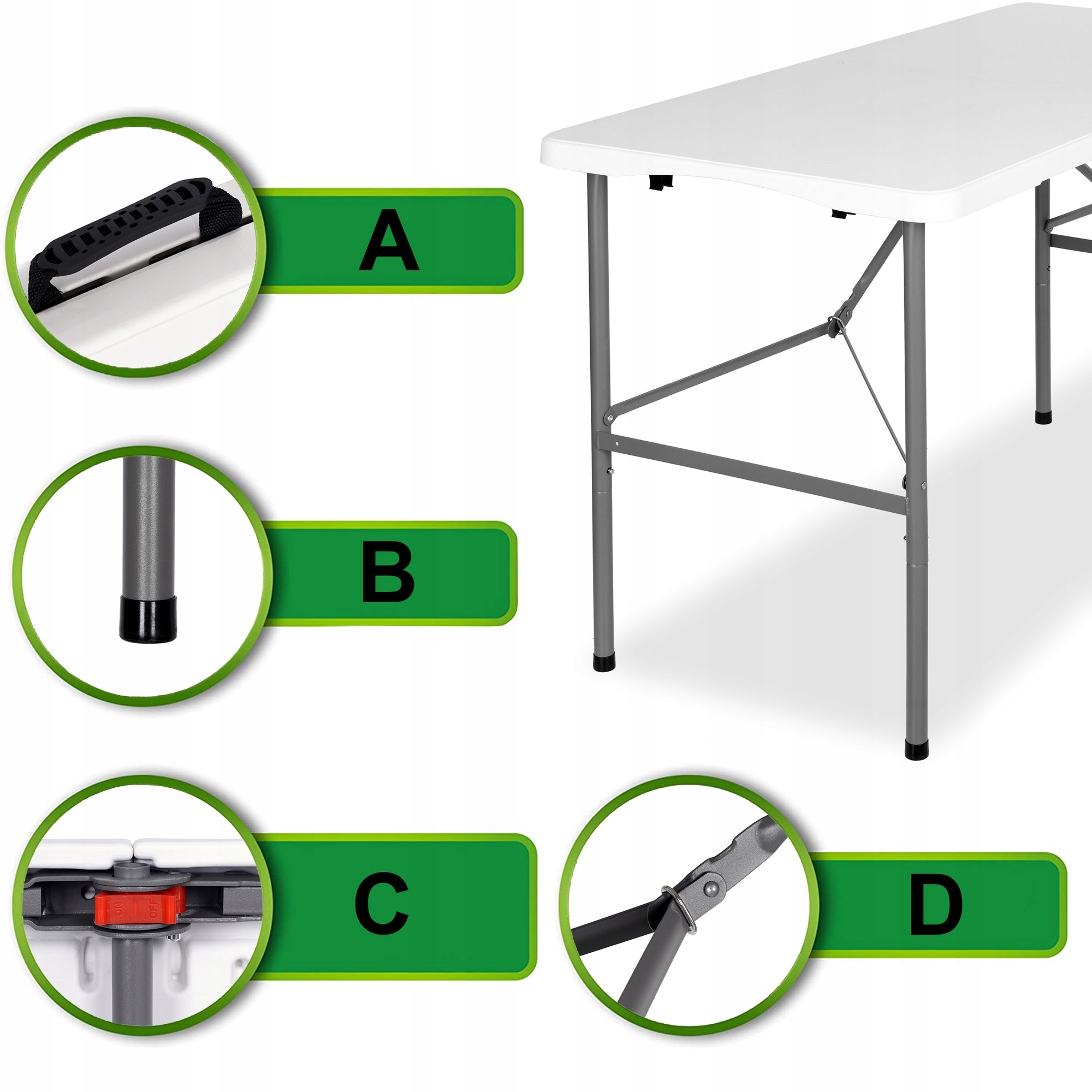 - Складається у практичну валізу - стіл довжиною 122 см легко транспортувати завдяки зручним ручкам і зберігати.
