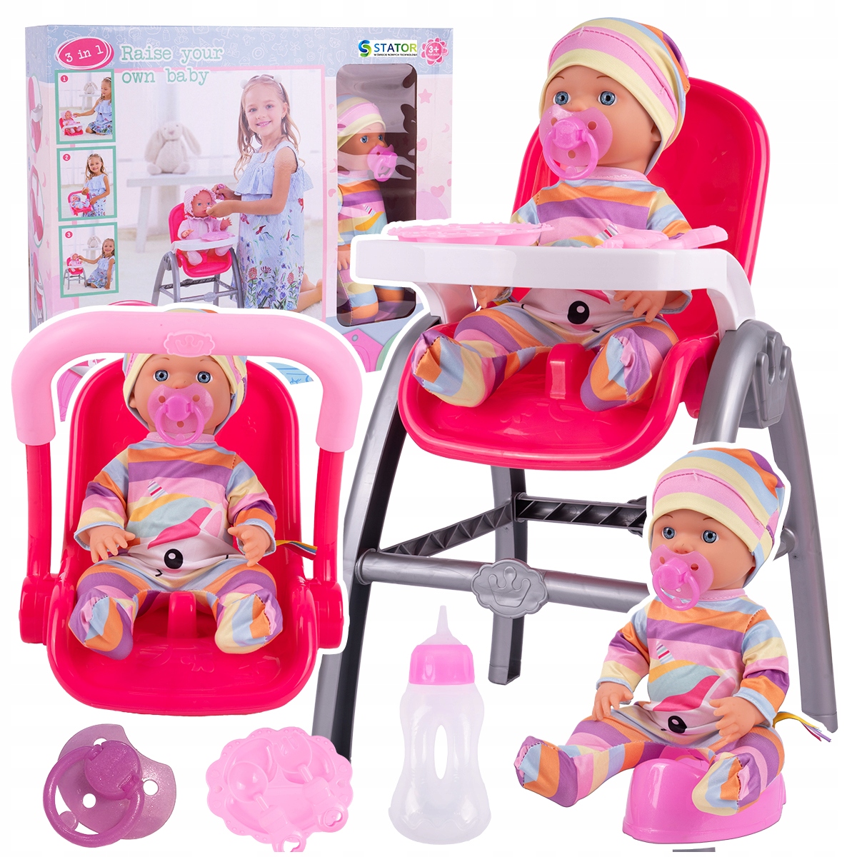 Набір оснащений практичним столиком для годування дитини. Якщо ваша дитина захоче взяти свою ляльку у подорож, просто перетворите столик на чарівну переноску!