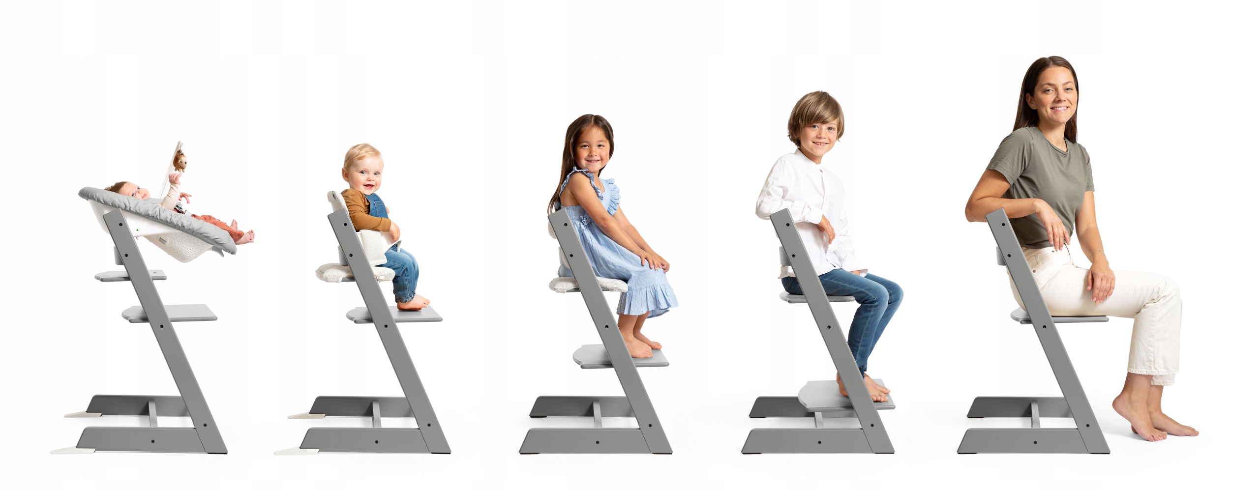 Крісло Tripp Trapp® росте разом з вашою дитиною. Продумана конструкція крісла забезпечує дитині свободу пересування завдяки сидінню та підніжці, які регулюються по висоті та глибині. Це означає, що правильна настройка крісла забезпечує комфорт і ергономічність для дитини в будь-якому віці.