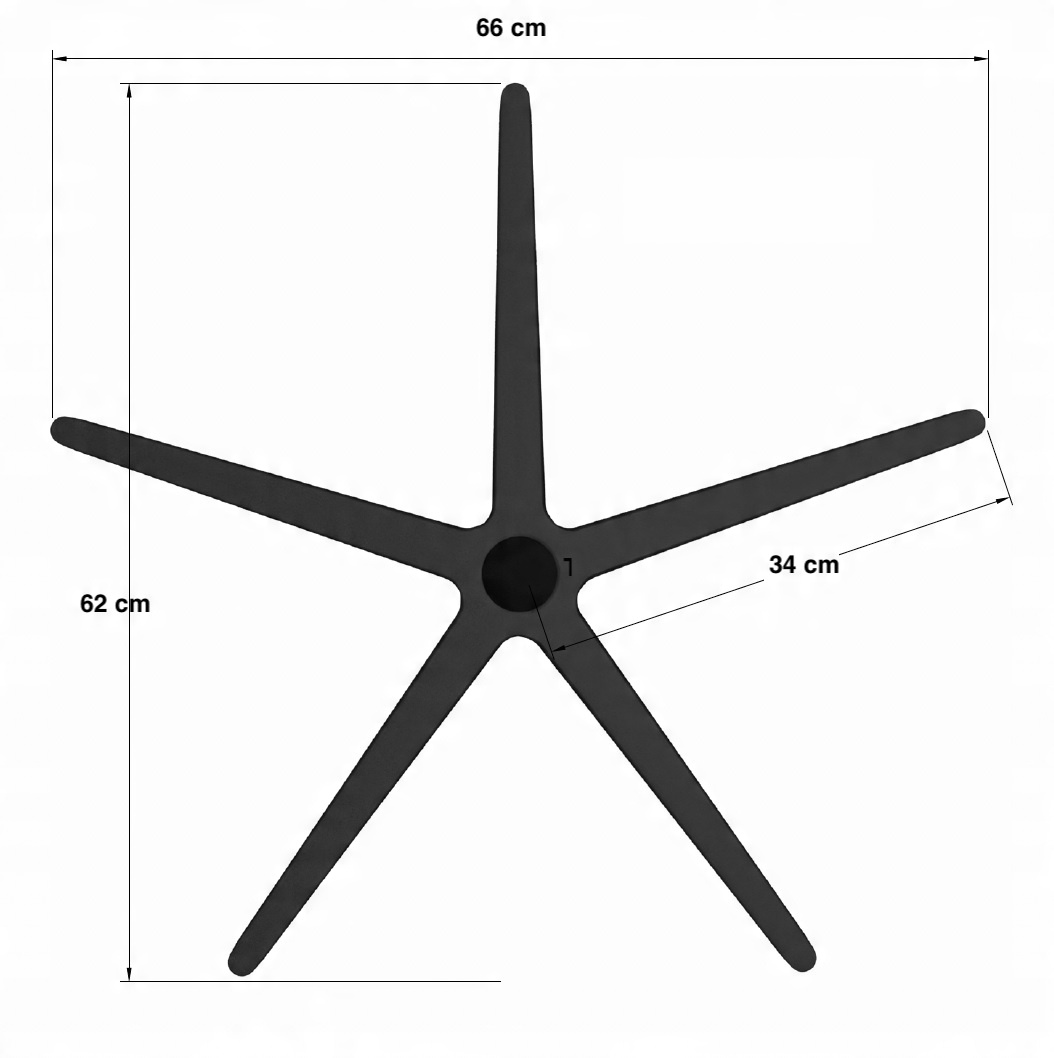 Конструкція - литий під тиском, поліамід із 30% скловолокна . Основа витримує статичний тиск понад 300 кгДизайн - Основа має сучасну форму, яка підходить для більшості стандартних крісел, що обертаються. Якщо основа здається занадто делікатною з точки зору дизайну, купіть базу TS 06Розмір - база, яка ідеально замінить основи від 60 до 70 см в діаметрі. (Загалом, краще мати більшу та стабільнішу основу, особливо коли використовується механізм гойдання – крісло не перекидається.) Якщо цей хрестик замалий, подумайте про придбання основи TS 25 або TS 06 Якщо ви все ще вважаєте, що вам потрібно щось краще. перегляньте мої аукціони на сталеві або алюмінієві основи⭐ Як вибрати основи? Насправді все просто.... ⭐