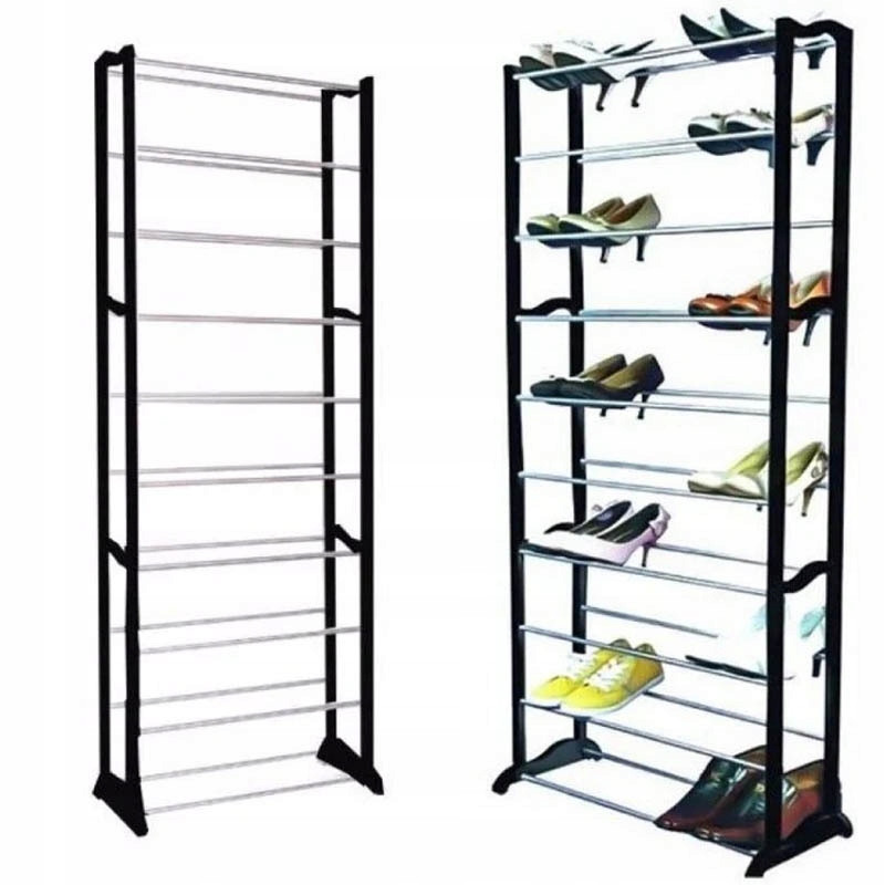 Практична 10-рівна металева полиця призначена для зберігання взуття. Права ширина та висота полиць гарантують, що ви можете зберігати на них усі типи взуття. На стійці ви можете поставити близько 30 пар взуття. 4 li>