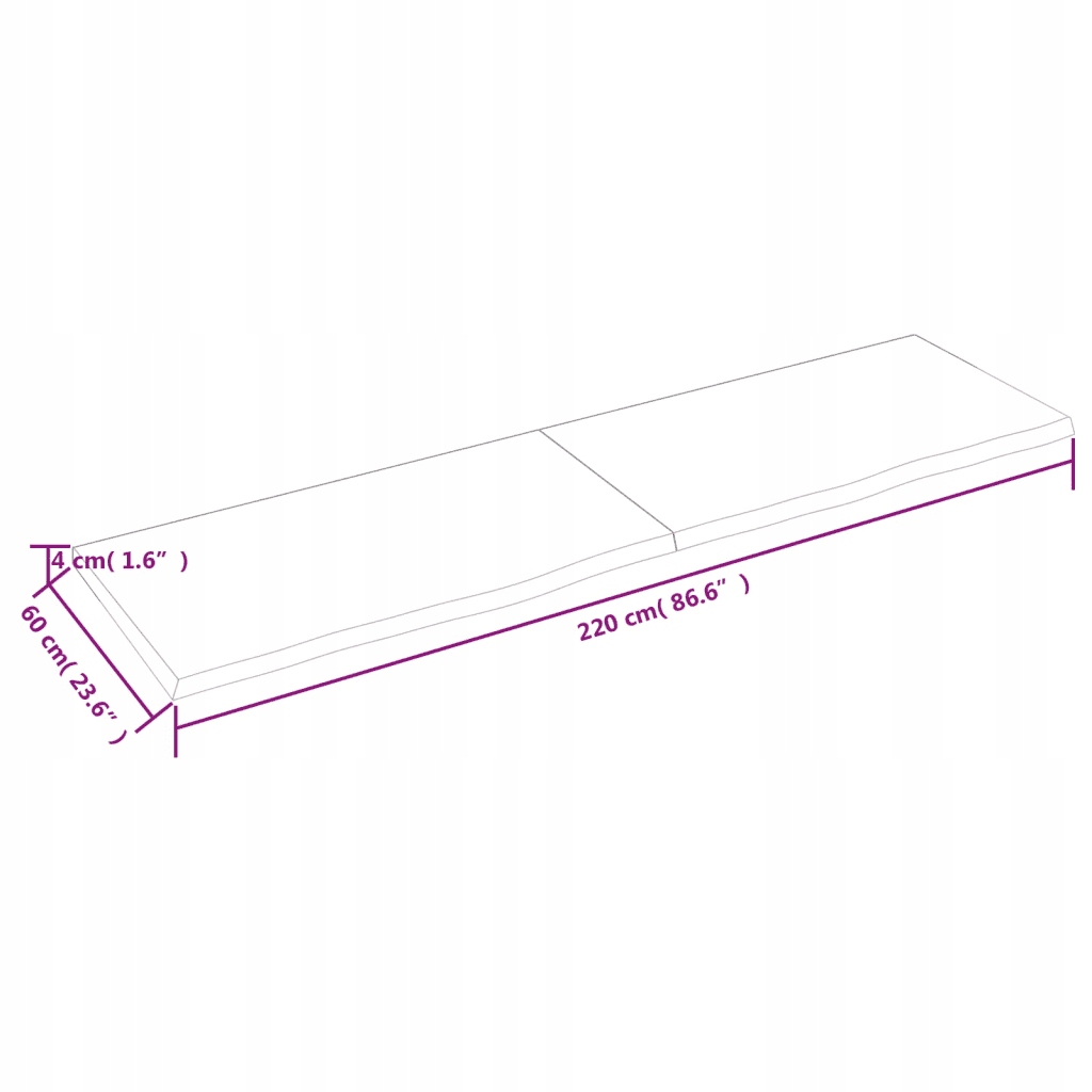 Дерев'яна дубова стільниця 220x60x4 см, світло-коричнева