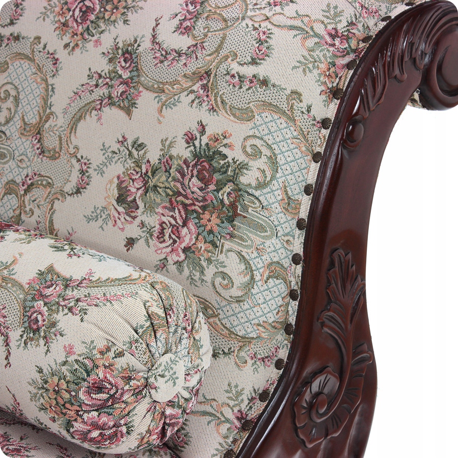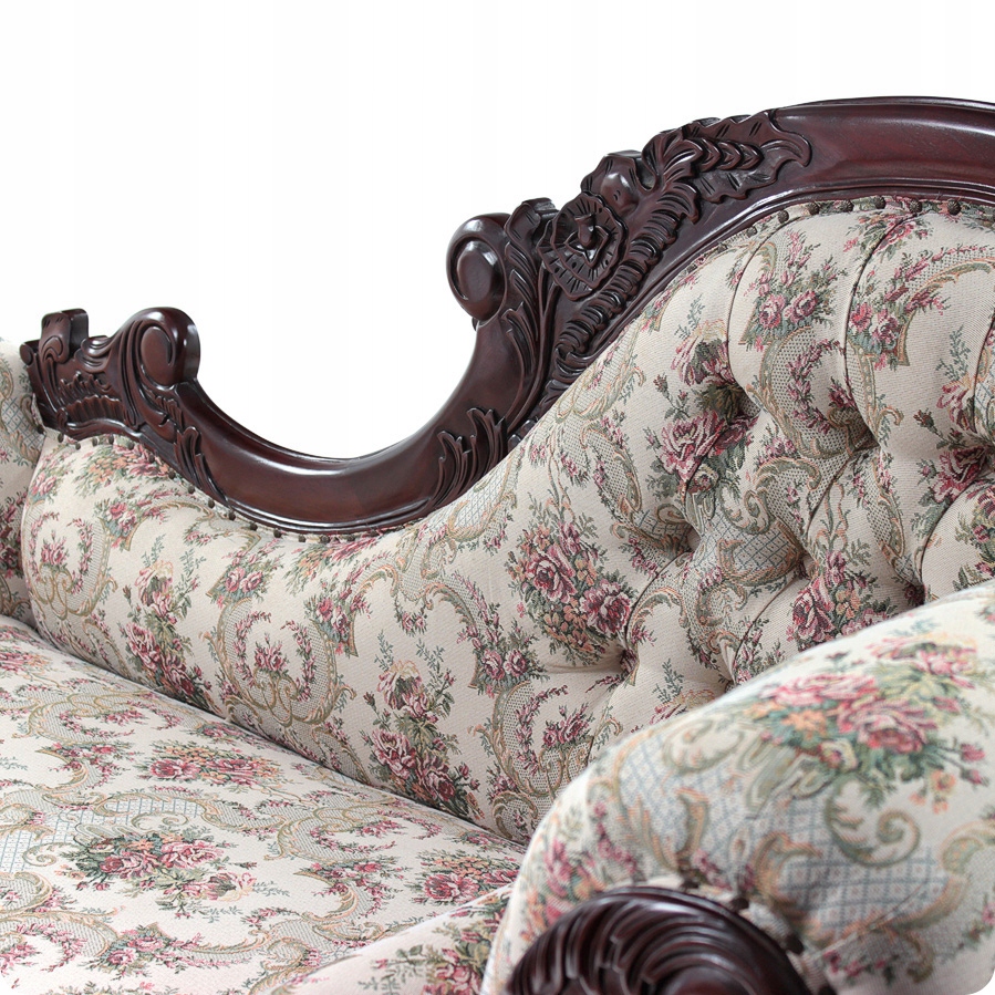 Ви прихильник старовинних стилів і ваш інтер'єр наповнений елегантністю? Щиро запрошуємо Вас переглянути наш диван! Це гарно оформлений предмет меблів, вірний античним зразкам. Ручне виготовлення з масиву червоного дерева гарантує високу міцність. Меблі оброблені бордовою оббивкою, яка чудово контрастує з темним червоним деревом.