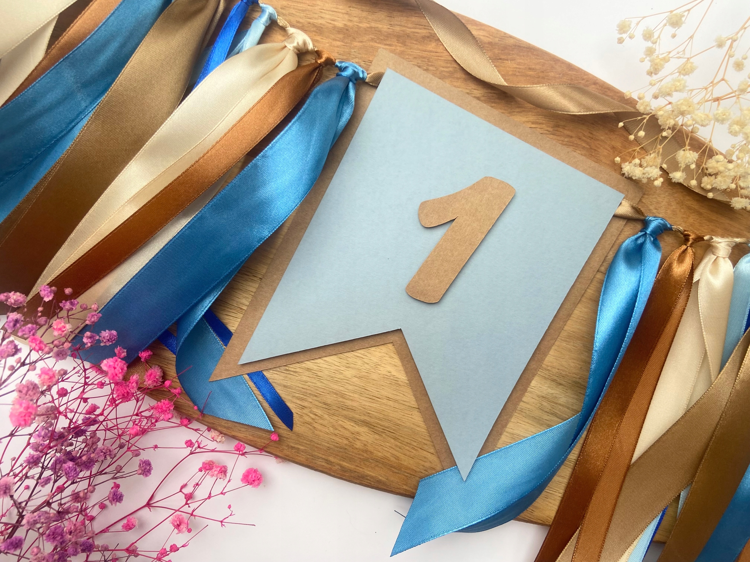 Стільський гірлянд з числами, вимпелом і атласною стрічкою - синій
