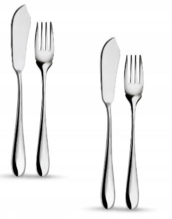 4- Частковий набір столових приборів для риби ідеально підходить для подрібнення ніжного м'яса та видалення кісток. Він складається з широкої вилки з отвором на кістці, полегшуючи клопоту -безперешкодно позбавити від них та спеціальний рибальний ніж з плоским лезом.