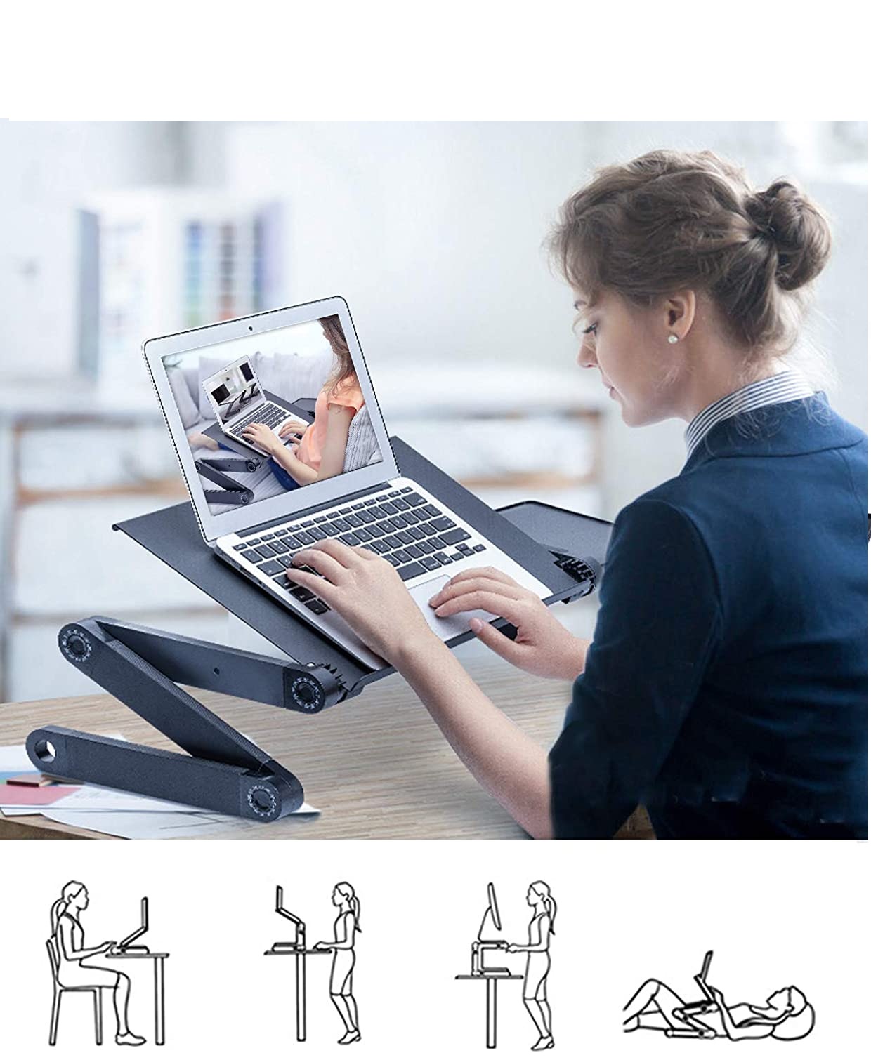 ✔️Надзвичайно функціональний портативний стіл - продукт, який забезпечить комфорт під час використання ноутбука. Складний стіл можна встановити в багатьох різних конфігураціях, що забезпечує ідеальне розташування ноутбука без необхідності тримати його на колінах.
