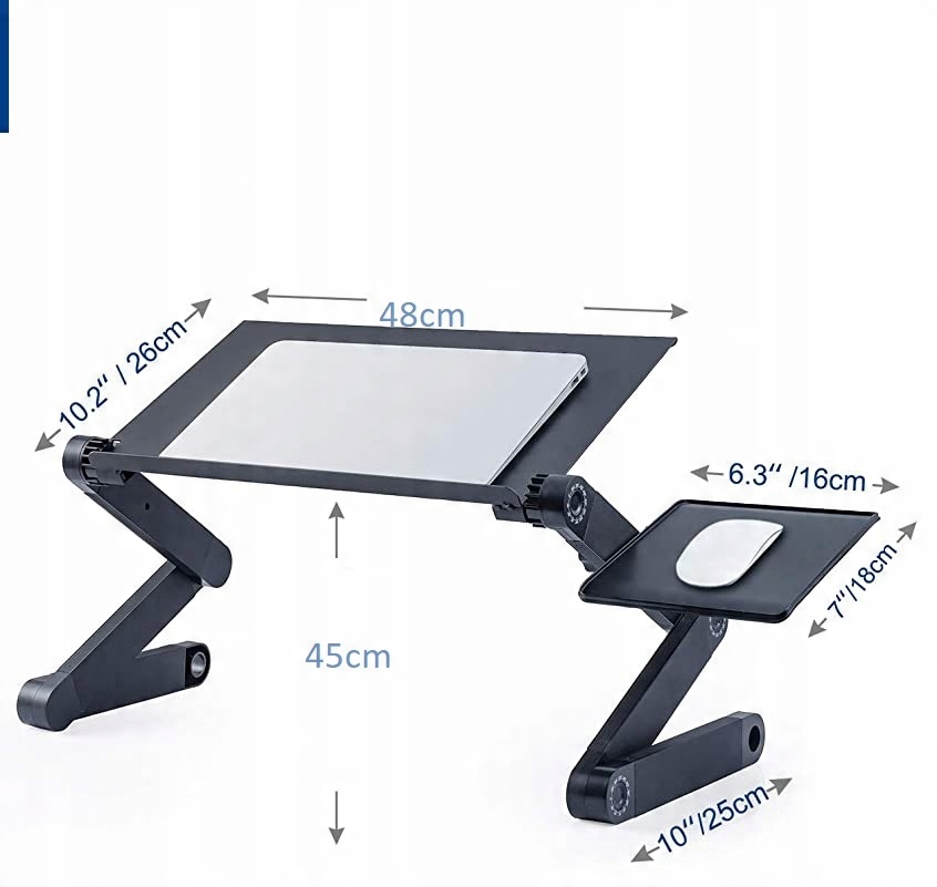 - Розміри стільниці для ноутбука: 48 см x 26 см, стільниці для миші: 16 см x 18 см,