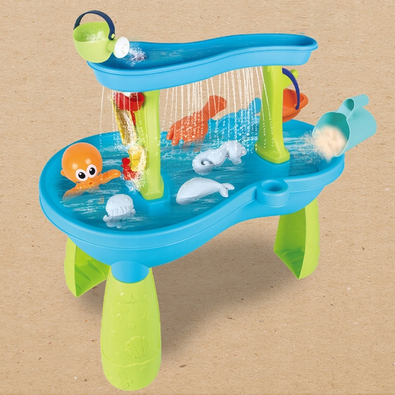 - Водний столик Octopus від бренду WOOPIE — ідеальна іграшка для гри з водою та піском. У наборі 18 аксесуарів: 3 формочки, восьминіг, лійка, кошик, ємність для збору піску та 2 лопатки. Дитина може наливати воду у верхню частину столу так, щоб вода виходила через отвори в нижній частині або стікала вниз по жорнах. Набір призначений для гри як у приміщенні, так і на вулиці. Ідеально підходить для гри вдома та на пляжі або в пісочниці.