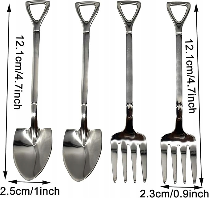 - Розмір: лопата ложка довжиною близько 12,1 см, шириною близько 2,5 см; довжина вилки лопати приблизно 12,1 см, ширина приблизно 2,3 см.