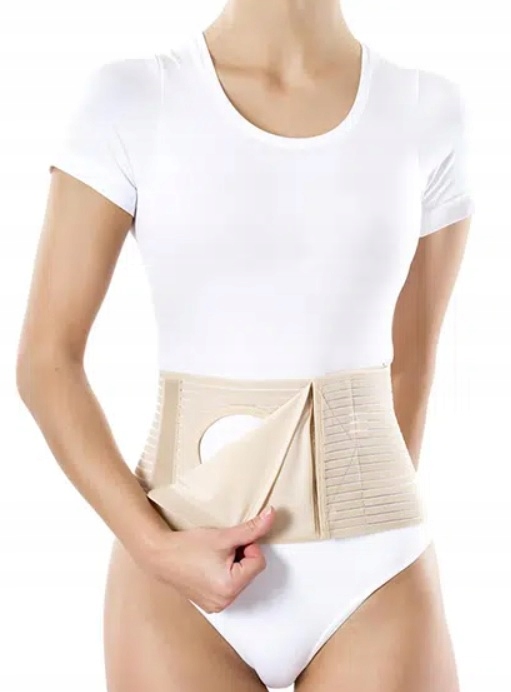 Висота талії 16 см. Запропонований абдомінальний стомічний пояс, який використовується в ранньому післяопераційному періоді, знижує ризик виникнення грижі в області свища. Крім того, пояс запобігає розширенню наявної грижі в області свища.