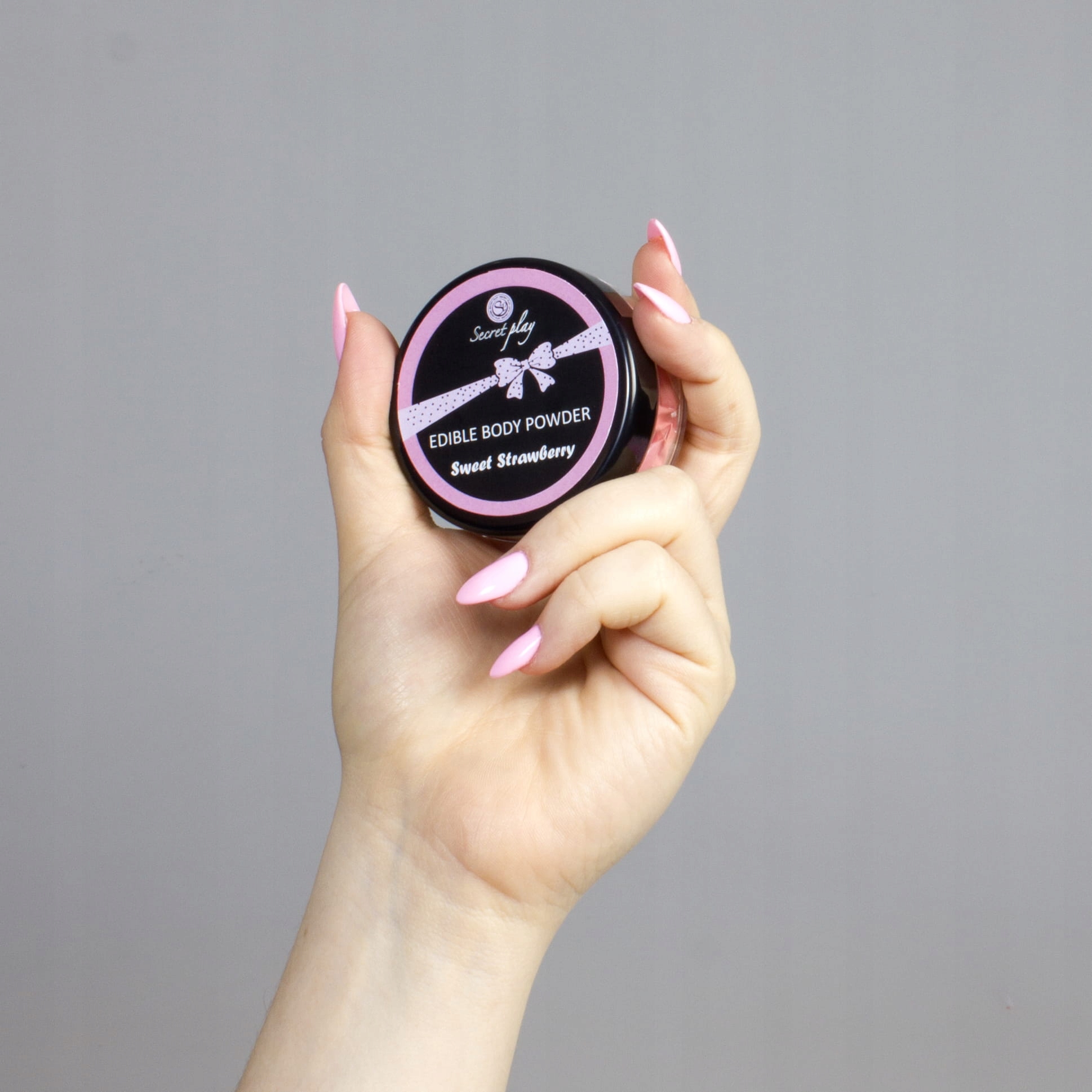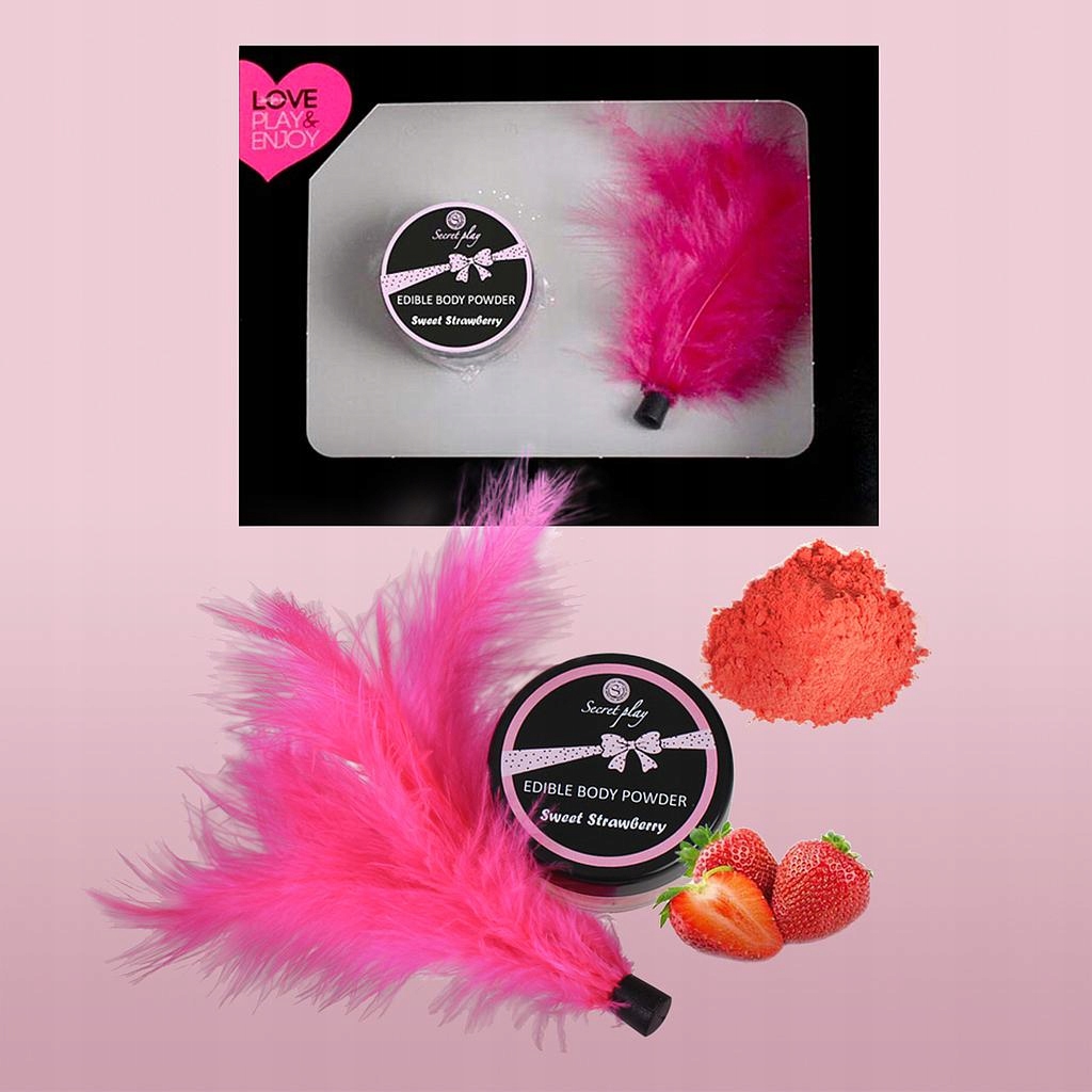 Смачна їстівна рожева пудра для тіла з солодким і ніжним ароматом полуниці та ніжне перо фуксії для погладжування