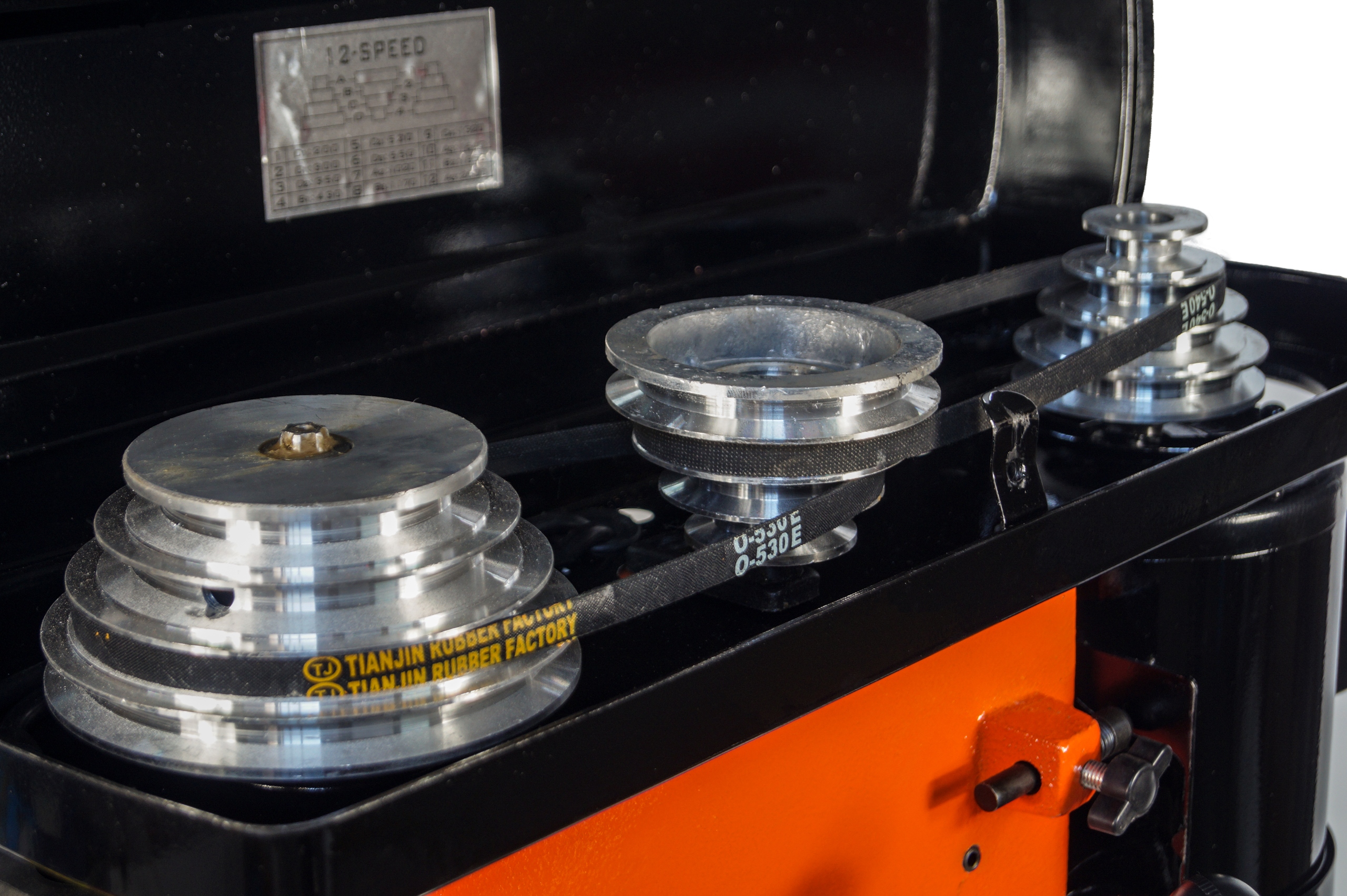 Свердло використовує три шків, щоб ми могли змінити швидкість в діапазоні від 200-2600 об/хв, змінивши смужки приводу. Зміна відбувається дуже просто завдяки натягувачу.