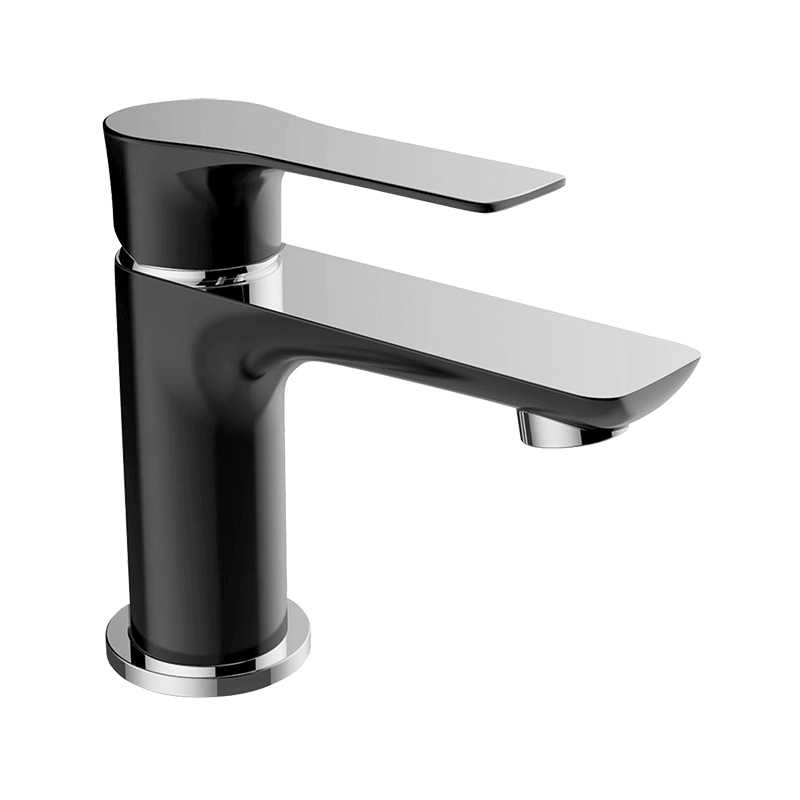 Змішувач для умивальника RAILA ЧОРНО-ХРОМОВИЙ з пробкою клац-клак