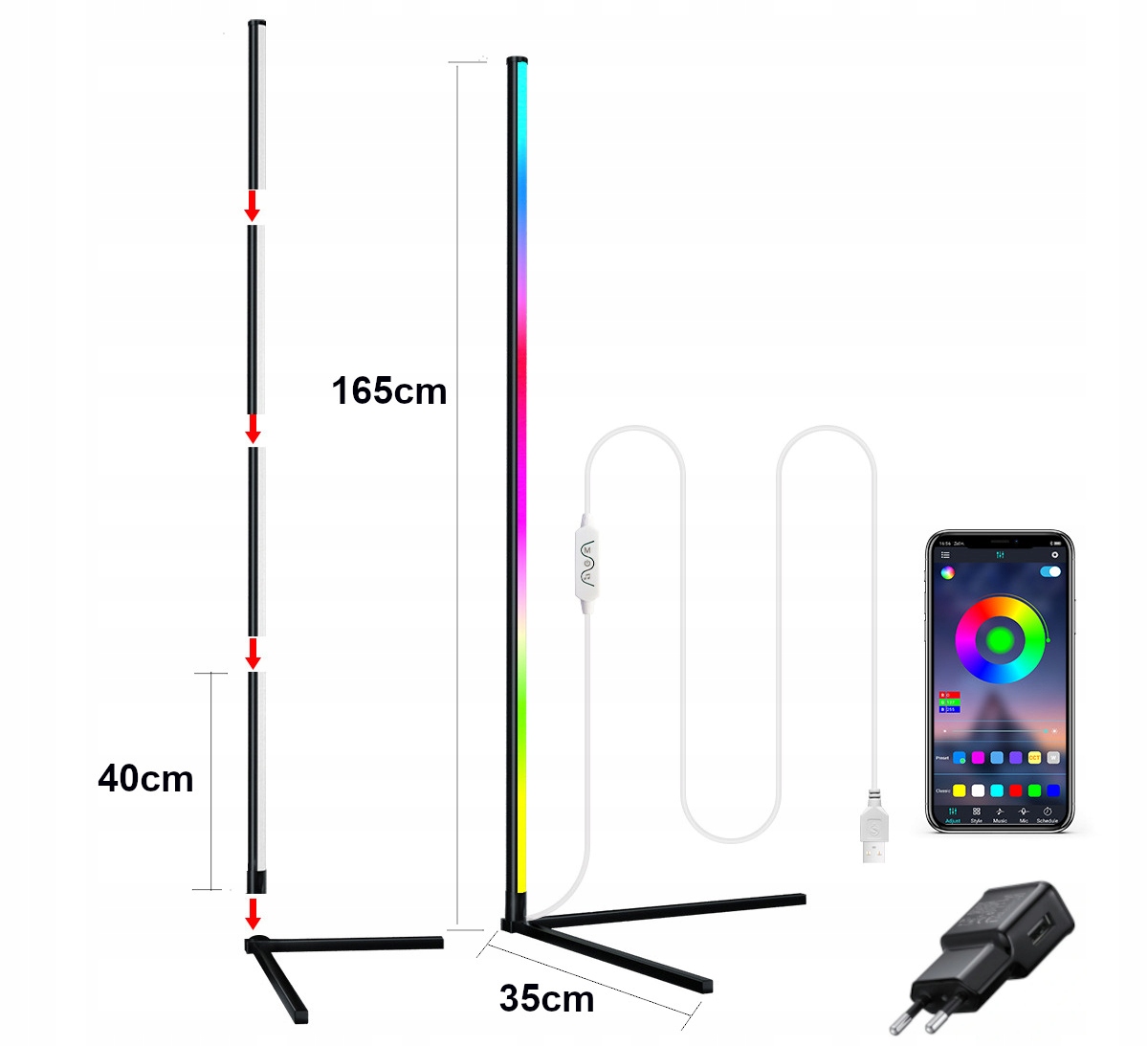 КУТОВИЙ ТОРШЕР RGB 165 см З КЕРУВАННЯМ ПУЛЬТОМ АБО ДОДАТКОМ