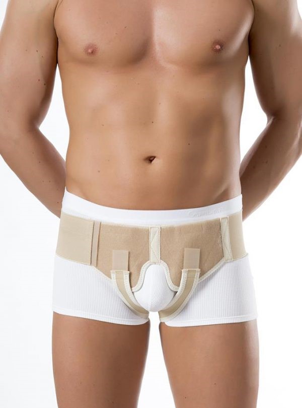 Двосторонній паховий пояс з пелотками польського бренду Pani Teresa використовується у пацієнтів (як жінок, так і чоловіків) з простою або косою паховою грижею. Застосовується також після хірургічного втручання при слабкому та млявому міофасціальному апараті, що перешкоджає виходу внутрішніх органів за межі кільця пахового каналу.