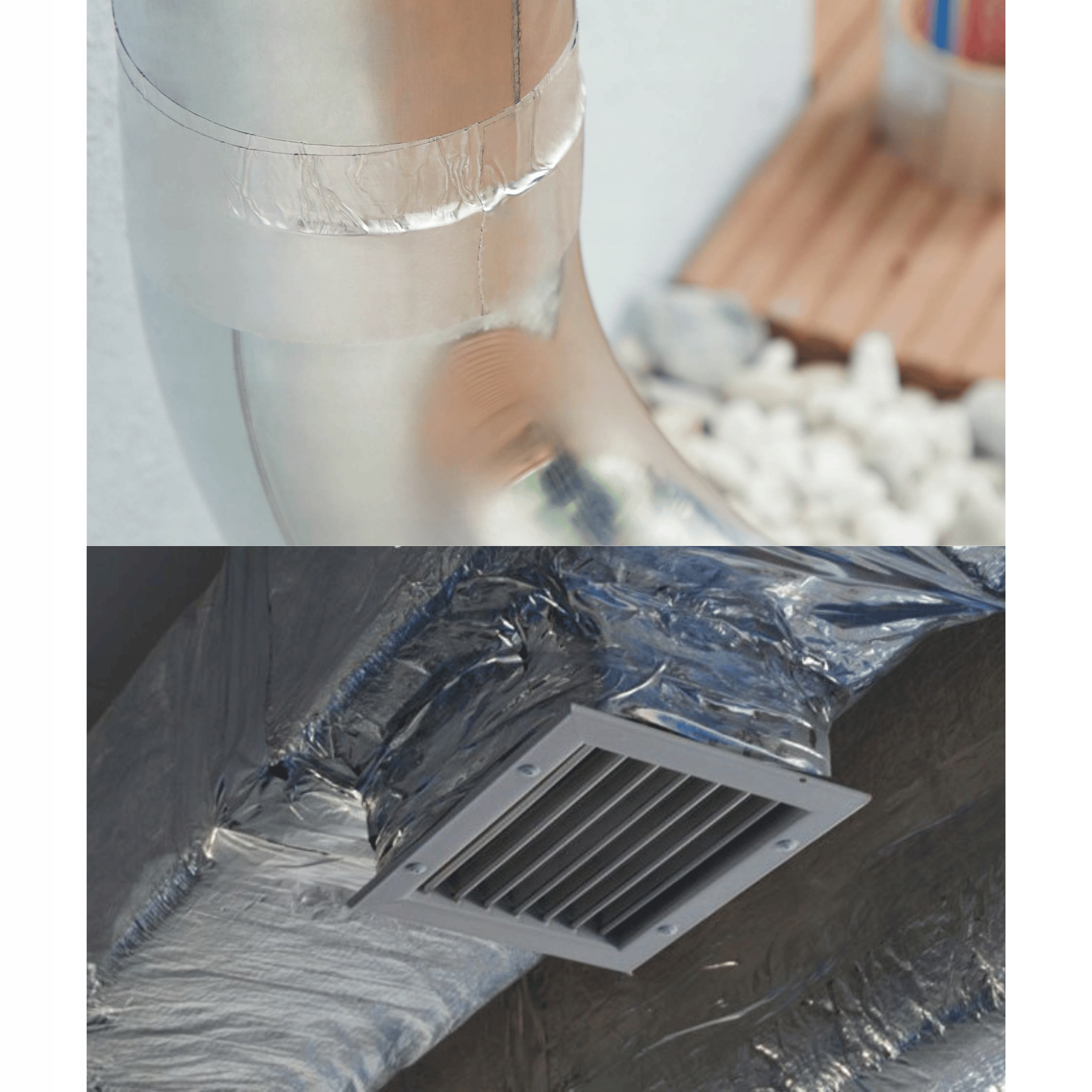 Алюмінієва стрічка – це продукт, який можна використовувати для ізоляції систем опалення та кондиціонування. Стрічка має високу стійкість до високих температур. (макс.100°C)
